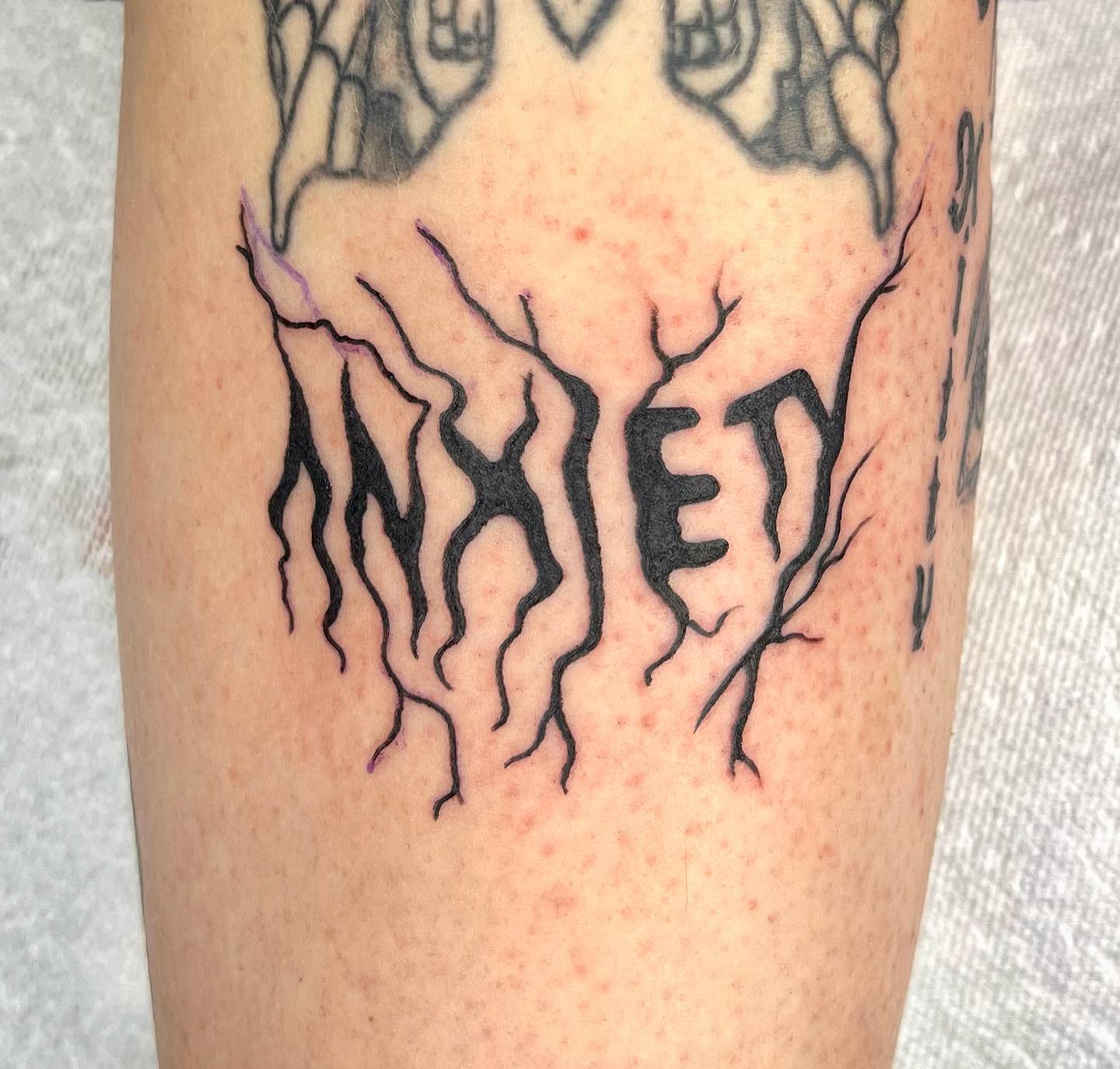 This tattoo stands out with its striking design, combining the word “Anxiety” with jagged lightning bolts that seem to crackle with energy. The unique blend of text and imagery reflects the powerful emotions tied to anxiety, making it both a personal statement and a piece of art. For anyone considering a lightning bolt tattoo, think about how your design can tell your own story.