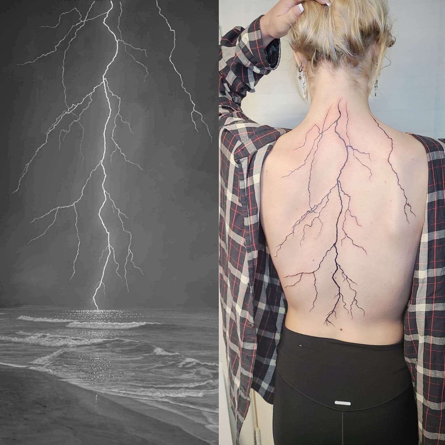This tattoo beautifully captures the intricate patterns of a lightning bolt, making it a striking piece of art. The delicate lines create a sense of movement, reminding viewers of nature’s raw power. For those considering a unique tattoo, choosing a design that reflects personal strength can be both meaningful and eye-catching.