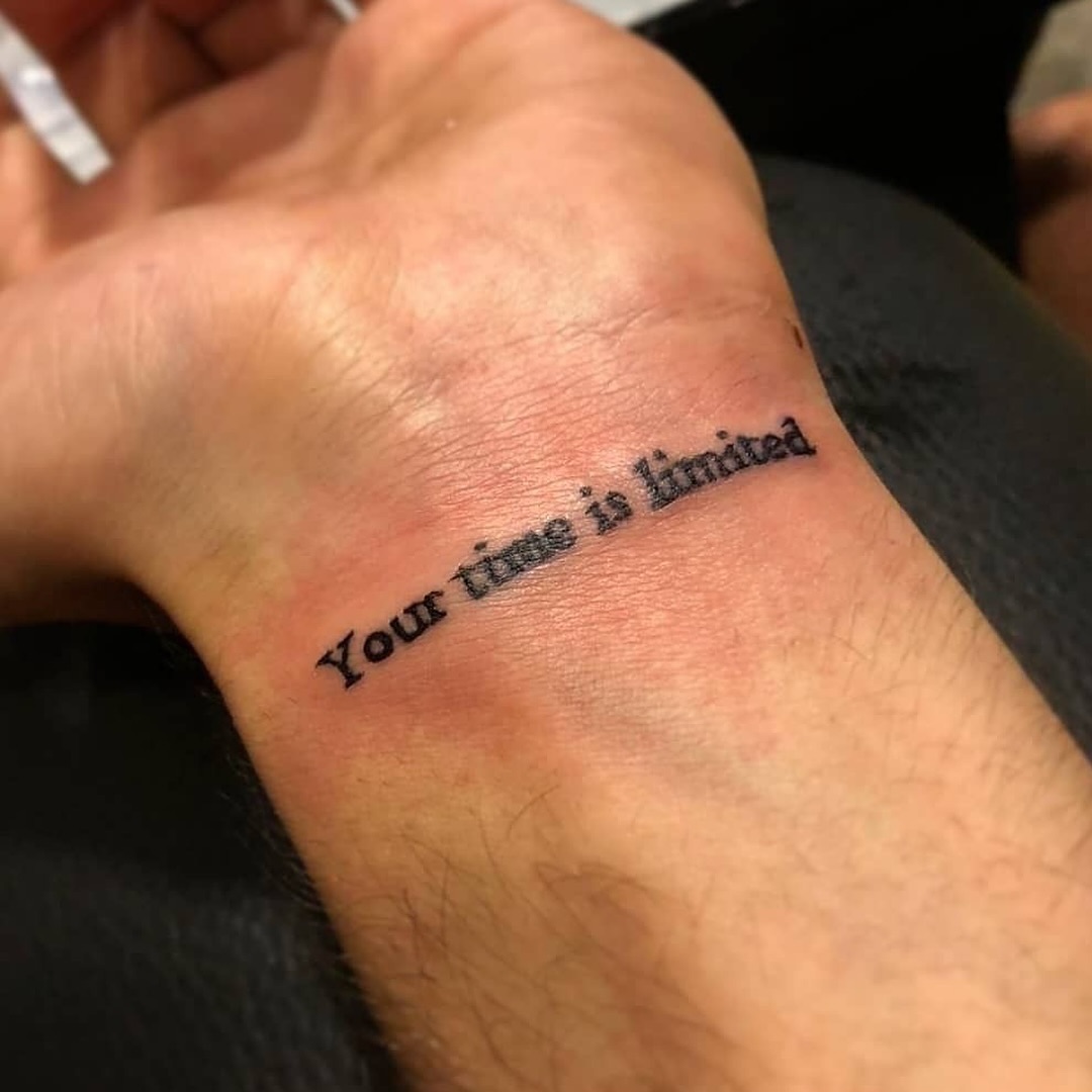 This tattoo, featuring the phrase “Your time is limited,” serves as a powerful reminder to cherish every moment. Many people find inspiration in such messages, especially parents who want to lead by example and appreciate life s fleeting nature. A meaningful tattoo can spark conversations about values and priorities, making it a special topic for families to explore together.