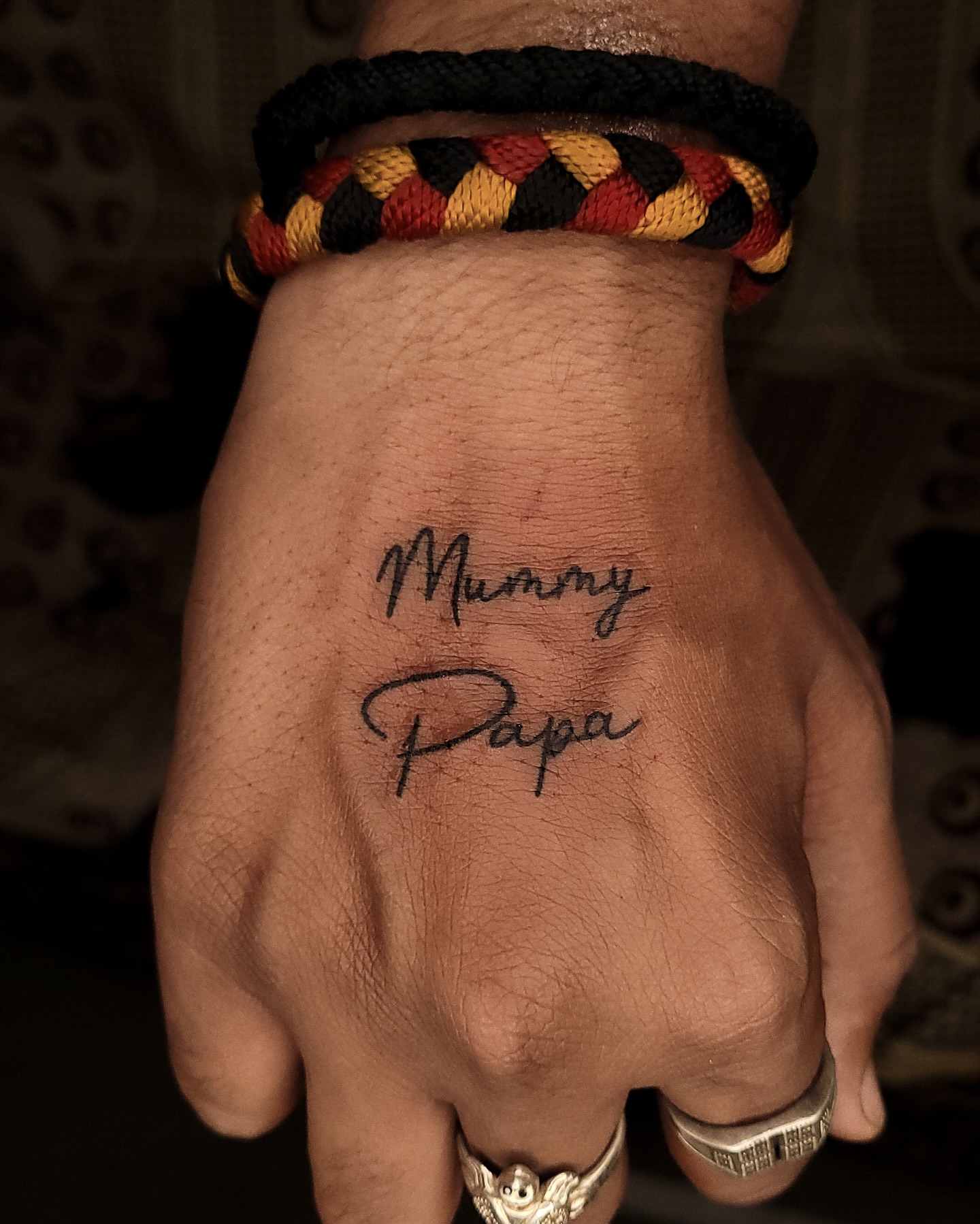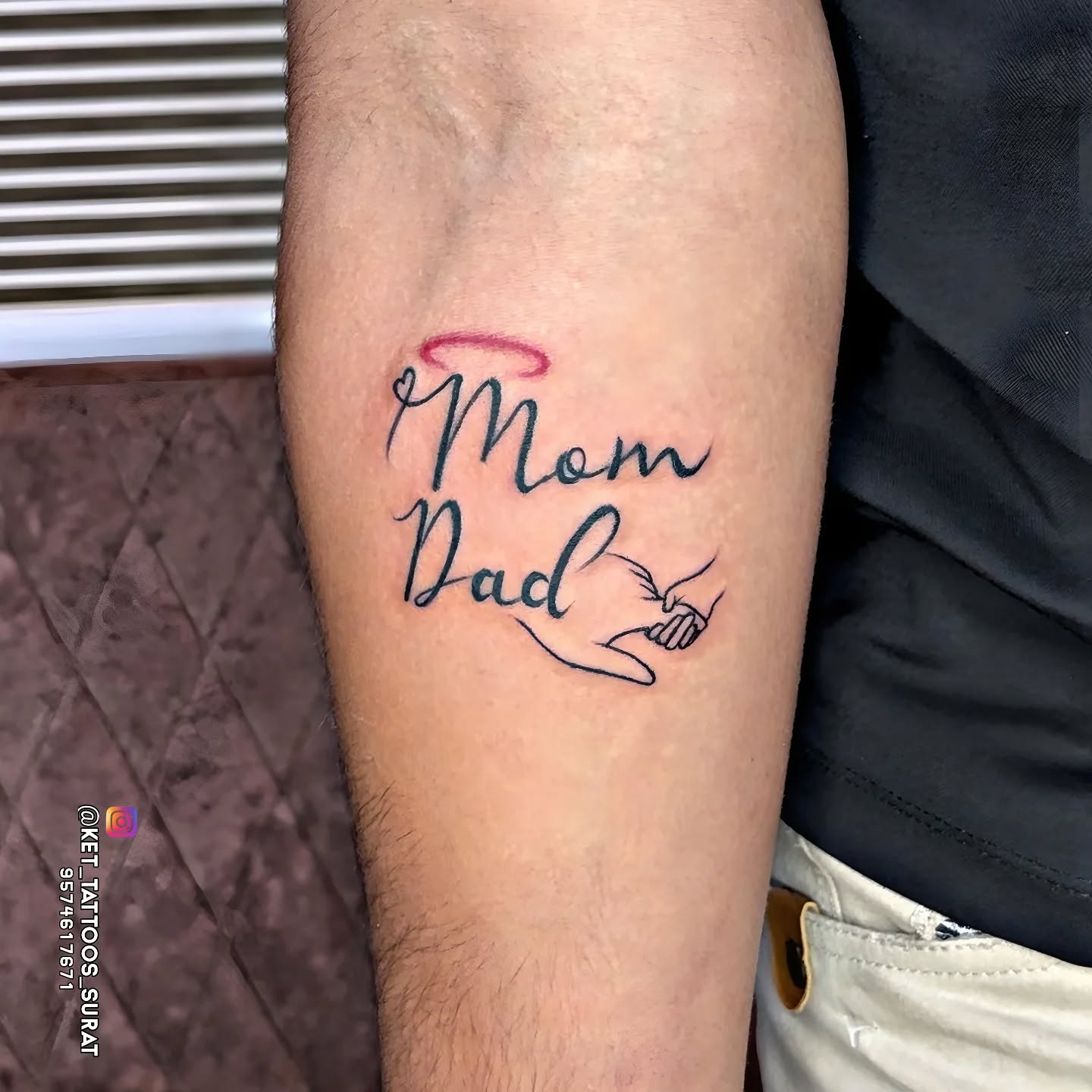 This touching tattoo beautifully displays the words “Mummy” and “Papa,” showcasing a deep love and appreciation for family. The elegant script adds a personal touch, making it a special reminder of cherished bonds. For those considering a tattoo for their parents, a simple design like this can convey profound emotions while celebrating family connections.