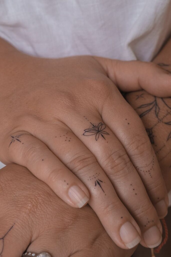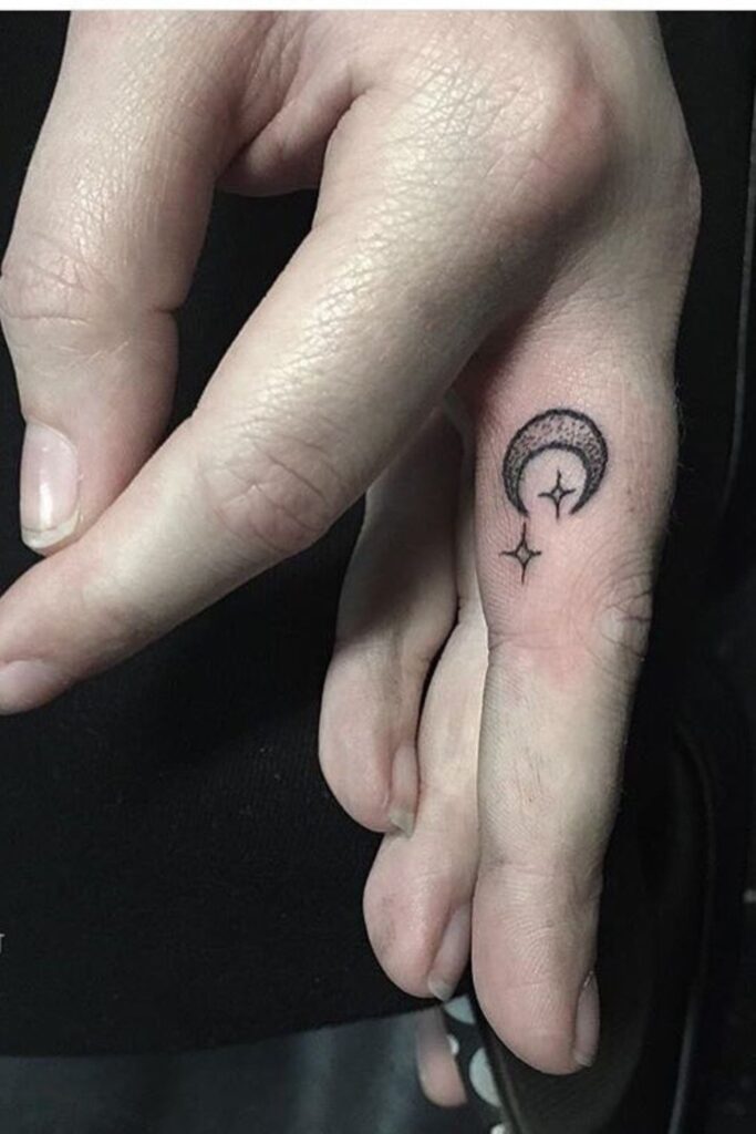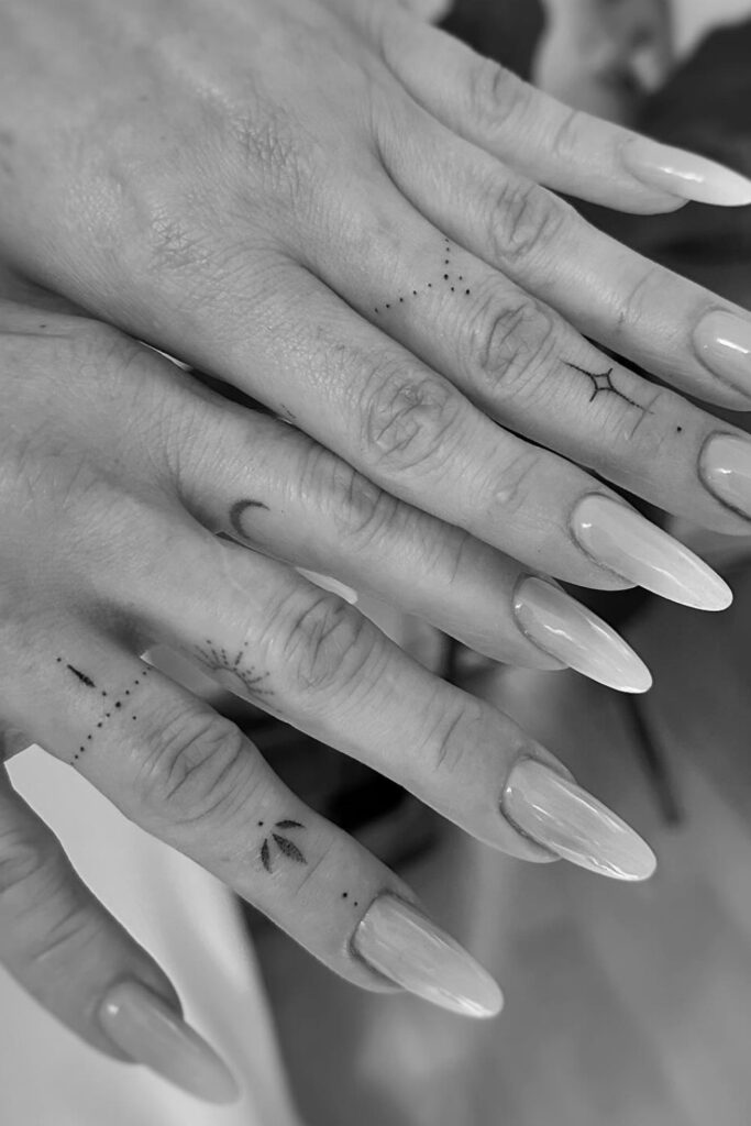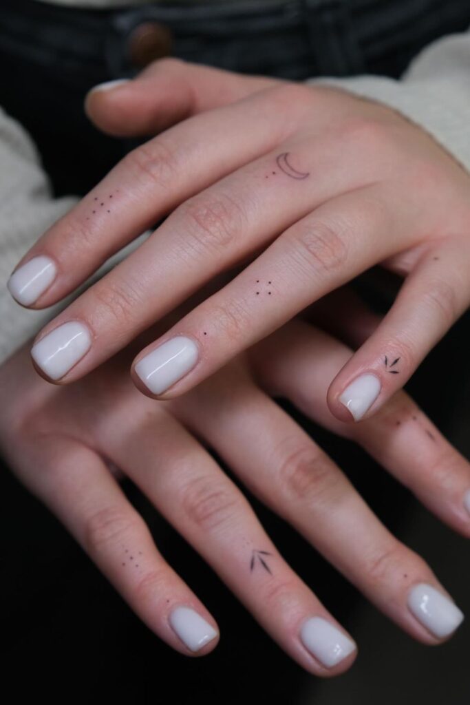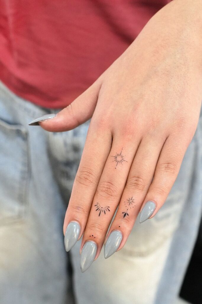 Tiny star motifs paired with clean lines make these finger tattoos a celebration of the night sky.