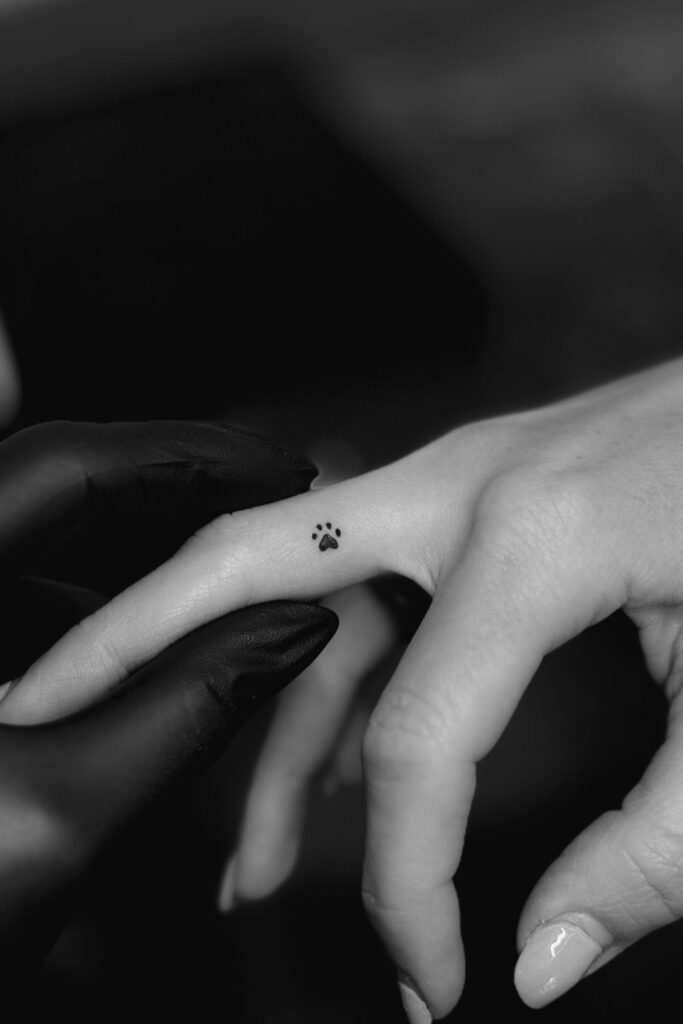 A single, adorable paw print makes this finger tattoo a heartfelt tribute to furry companions.