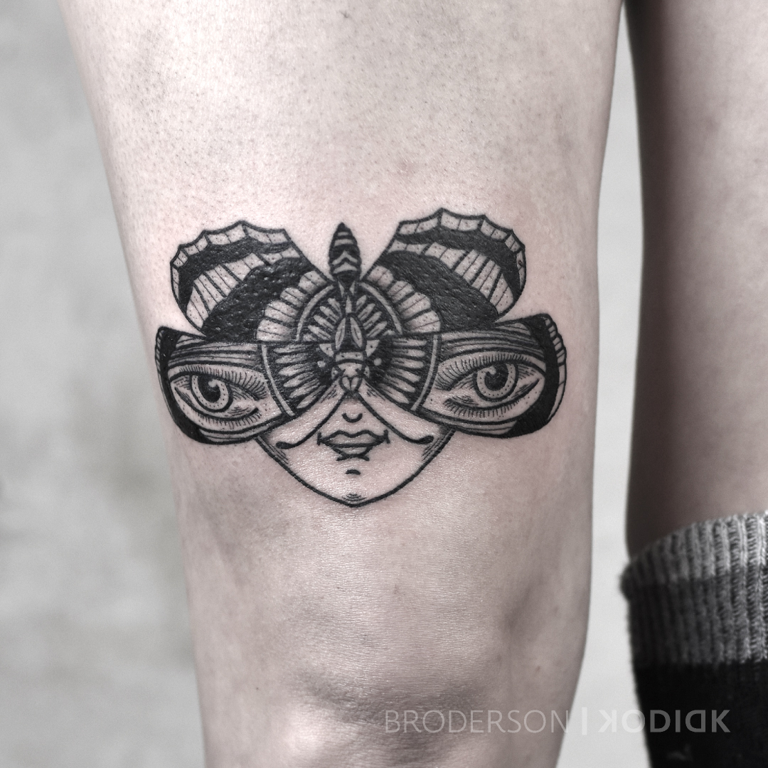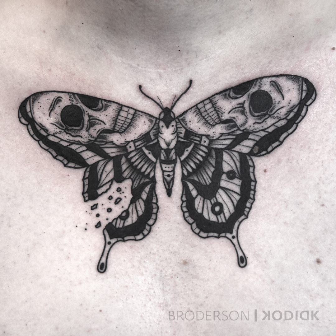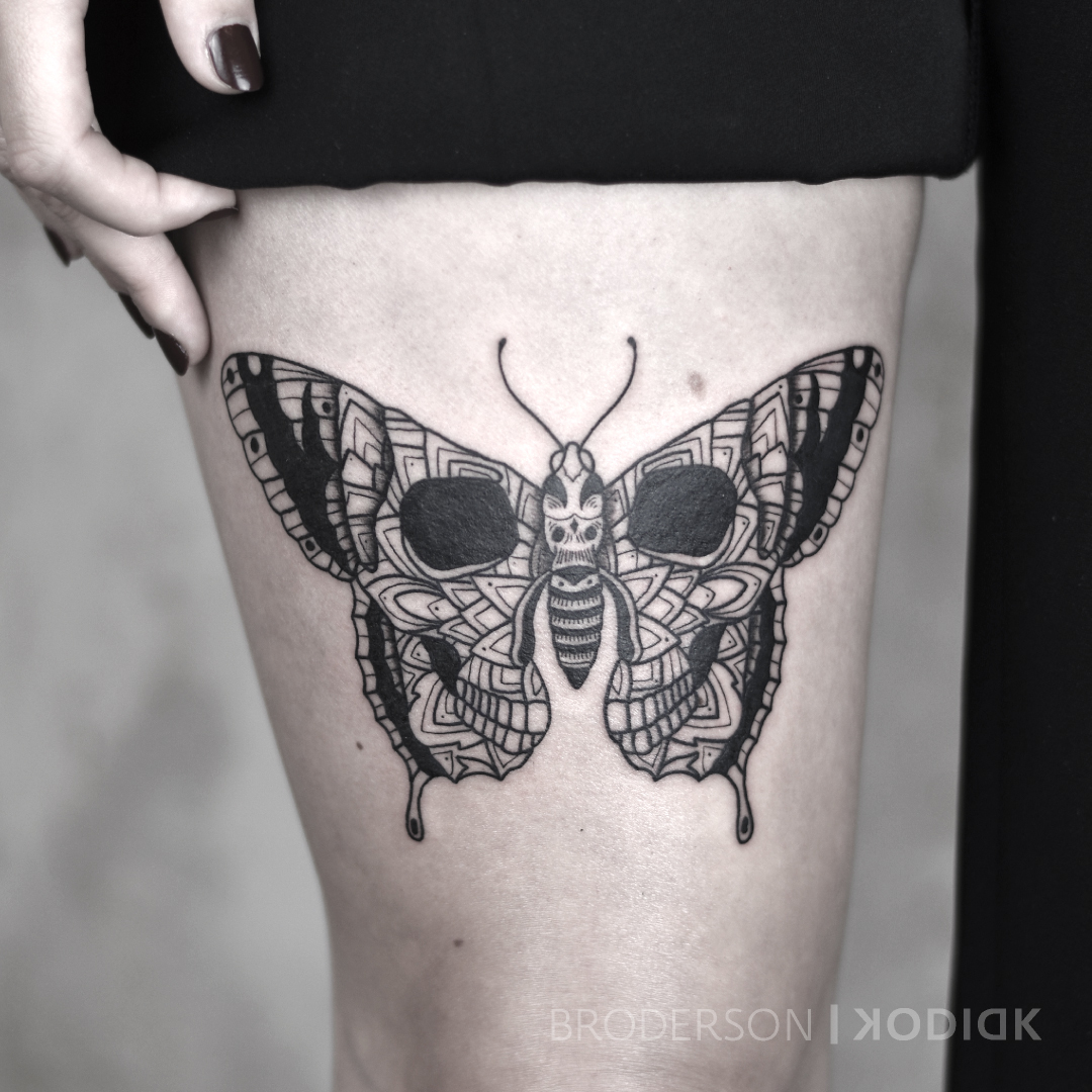 This tattoo beautifully blends the delicate features of a butterfly with striking skull elements, creating an eye-catching and thought-provoking piece. The intricate details in the wings showcase both artistry and imagination, making it a standout choice for anyone looking to express their unique style. For those considering a similar design, think about how you can personalize it to reflect your own story or interests.