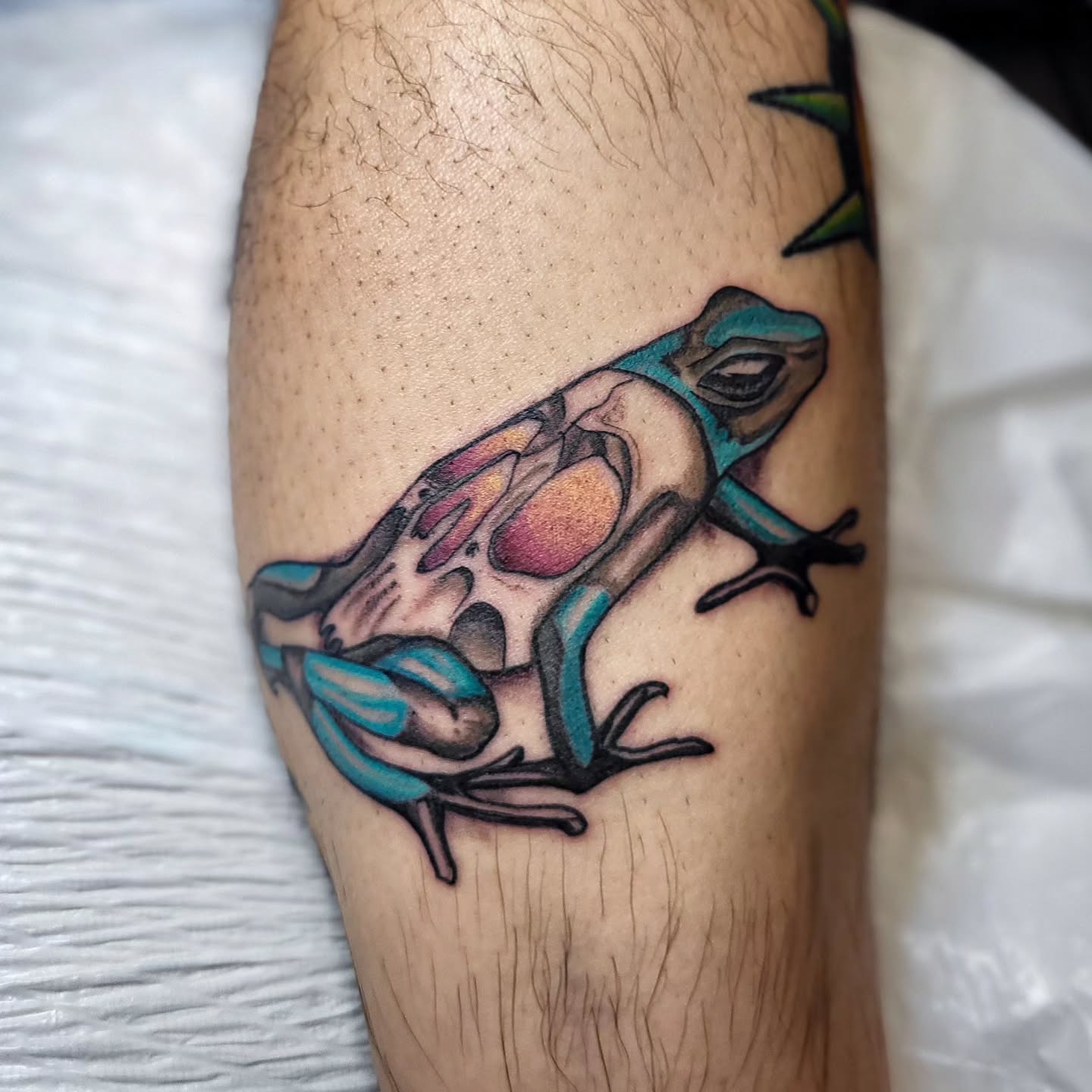 This tattoo stands out with its striking design of a colorful frog that cleverly incorporates skull elements. The vibrant colors and intricate details create a fascinating blend of nature and the unconventional, showcasing how unique skull tattoos can push artistic boundaries. For those considering a similar tattoo, think about how personal symbols can transform ordinary designs into something truly special.