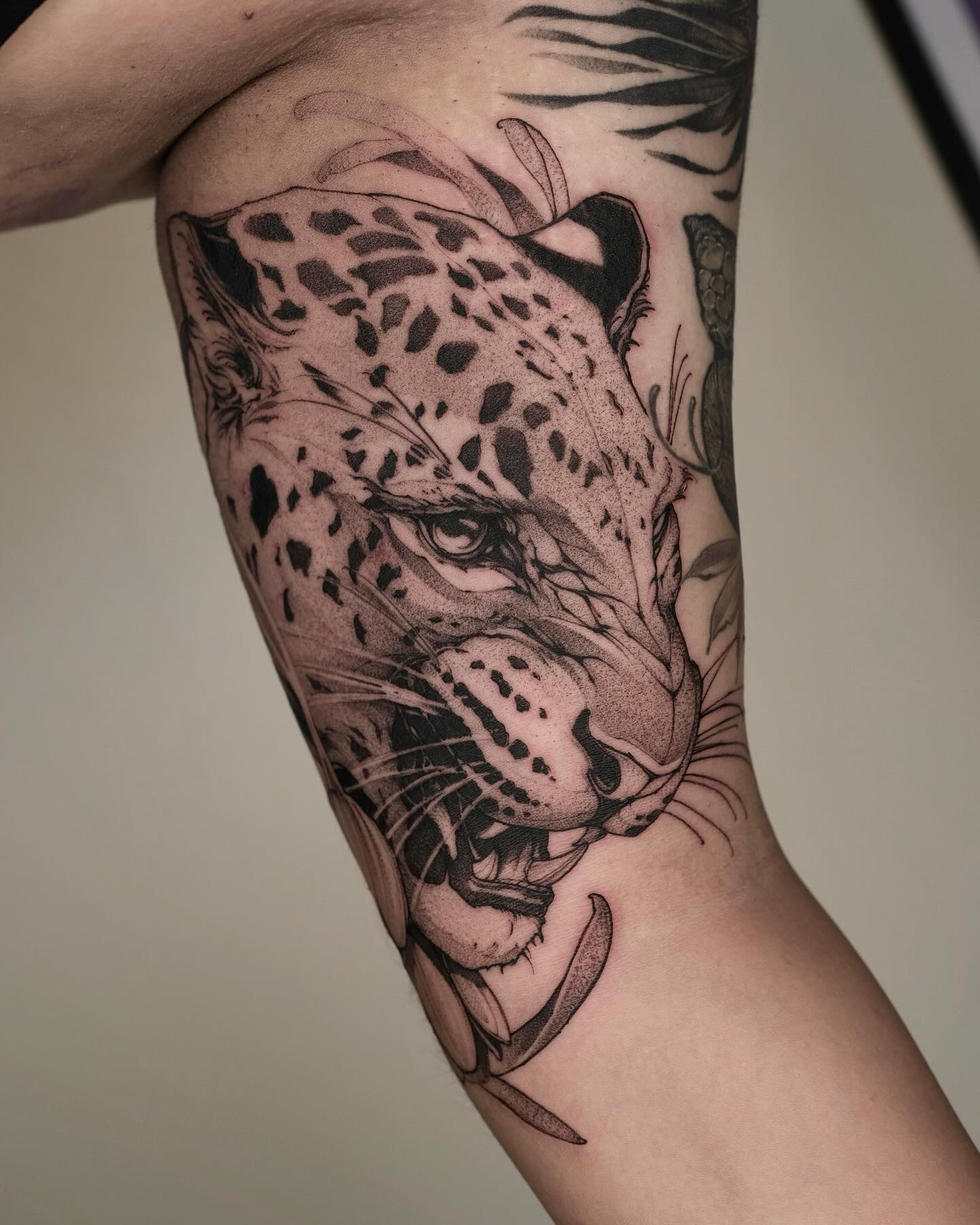 This tattoo could be ideal for someone who admires wildlife or seeks to symbolize strength and femininity in their body art.