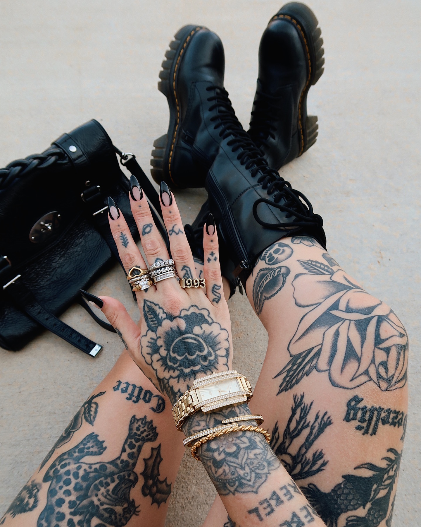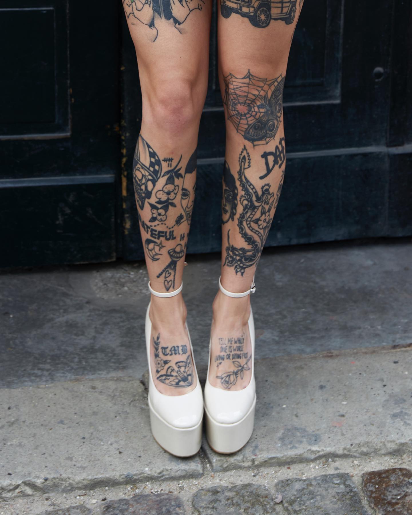 This image showcases a stunning array of tattoos that transform the legs into a vibrant canvas of art and expression. Each design tells a unique story, from floral motifs to playful text, reflecting the wearer’s personality and interests. For those considering patchwork tattoos, remember that the best designs often come from personal significance and creativity.