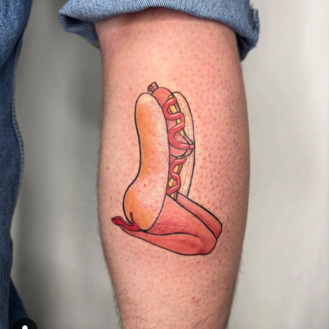 16. Delightful Hot Dog Tattoo Surprise