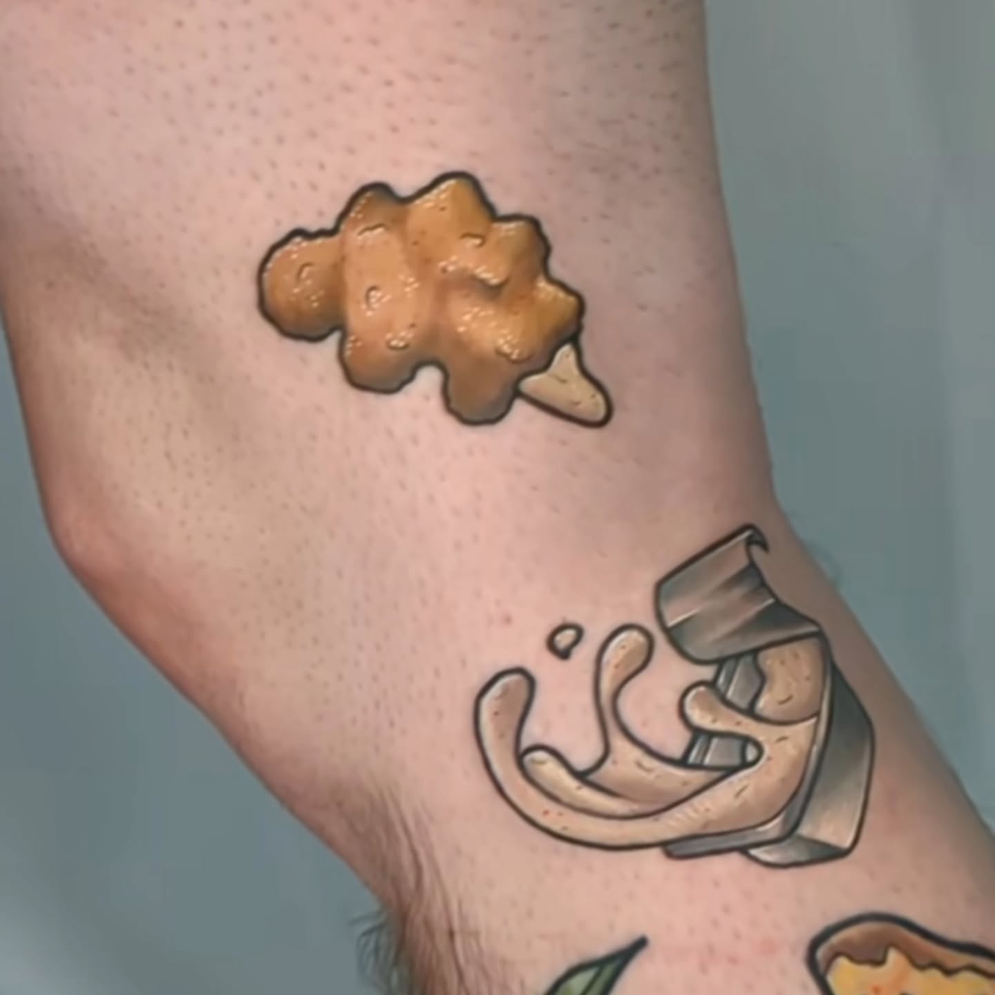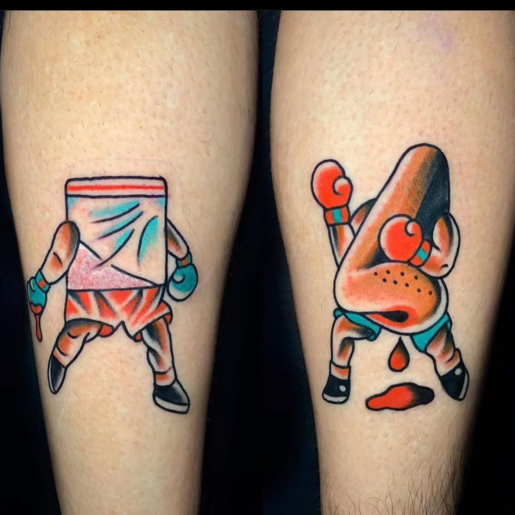 These tattoos showcase an amusing food-themed boxing match, featuring a boxing bag and a hot dog in the ring. The playful design not only brings a smile but also highlights the artist’s creativity in blending humor with body art. For anyone considering unique tattoos, it s a fun reminder that inspiration can come from the most unexpected places!