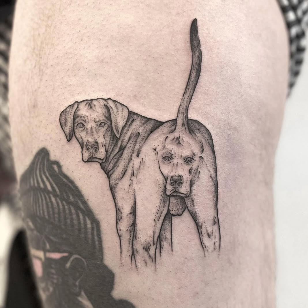 This tattoo cleverly portrays two dogs, one with its back to the viewer, creating a playful illusion. The unique design sparks curiosity and conversation, reminding everyone that art can be both funny and fascinating. When choosing a tattoo, think about how it reflects your personality or sense of humor!