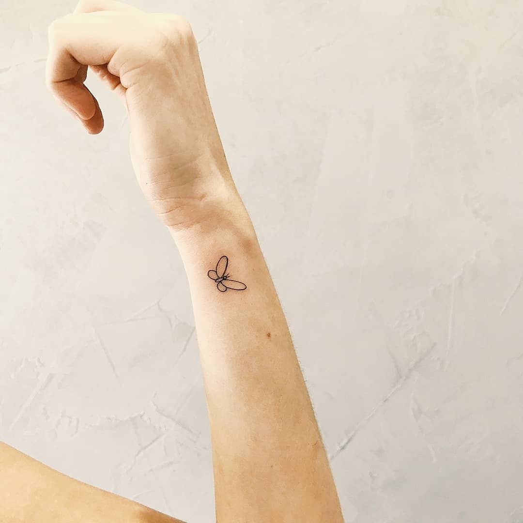 This image showcases a delicate butterfly tattoo, capturing a sense of freedom and grace. Its minimalist design is perfect for those who appreciate subtle elegance in their body art. For anyone considering a wrist tattoo, starting with a simple design can make a meaningful statement without overwhelming the space.