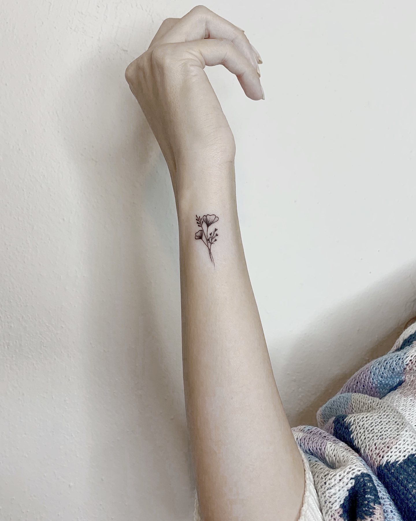 This wrist tattoo features a delicate floral design that captures elegance with its simplicity. The fine lines and subtle details make it a perfect choice for those who appreciate understated beauty. It’s a charming reminder that sometimes, less is more when it comes to personal expression.