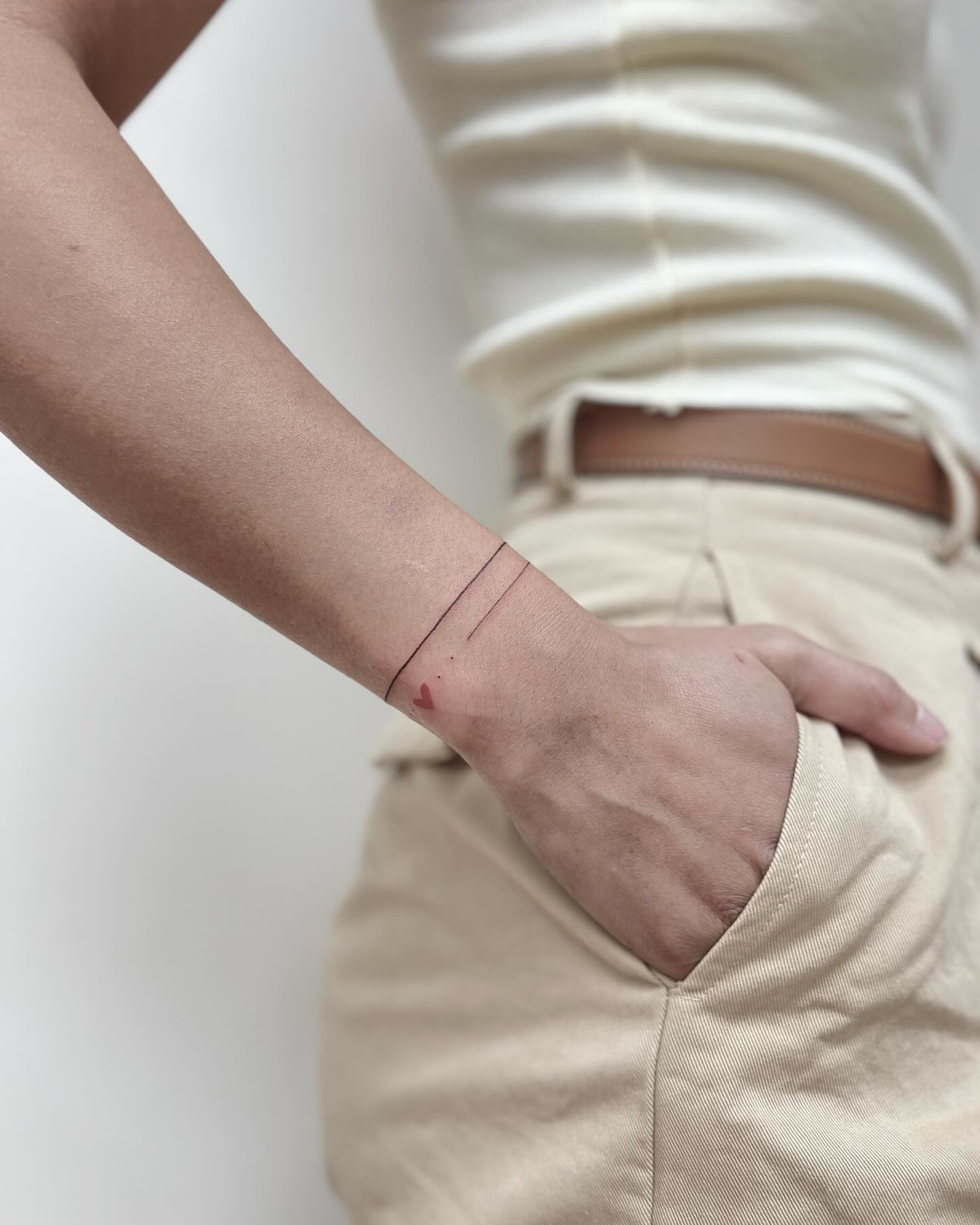 This image captures the beauty of simplicity with a delicate heart tattoo on the wrist. The minimalist design adds a touch of elegance, making it a perfect choice for those who appreciate subtlety. Wrist tattoos like this can be a meaningful reminder of love and connection, always within sight.