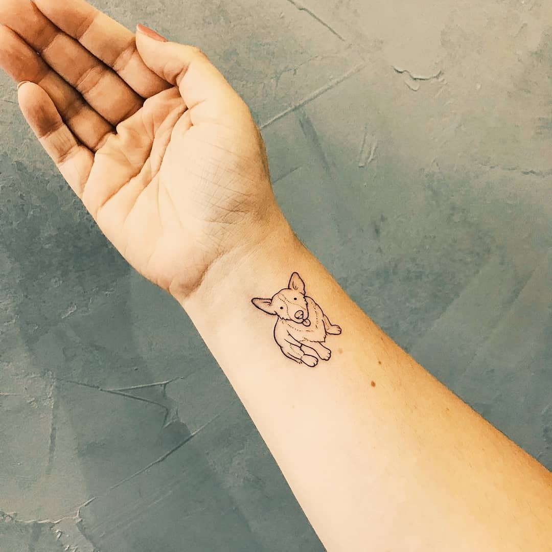 This delightful wrist tattoo features a charming outline of a dog, full of character and warmth. The simple design captures the essence of a beloved pet, making it both personal and heartwarming. For animal lovers, a wrist tattoo like this can be a constant reminder of a furry friend s unconditional love.
