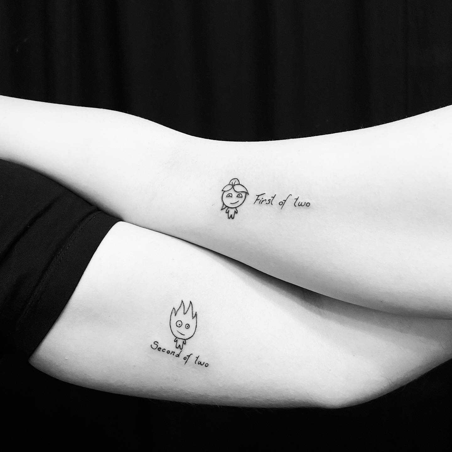 This image showcases two charming tattoos, each marking the special bond between a brother and sister. With playful designs and the phrases âFirst of Twoâ and âSecond of Two,â these tattoos symbolize their unique relationship. When choosing sibling tattoos, consider designs that reflect shared interests or memories for a more personal touch.