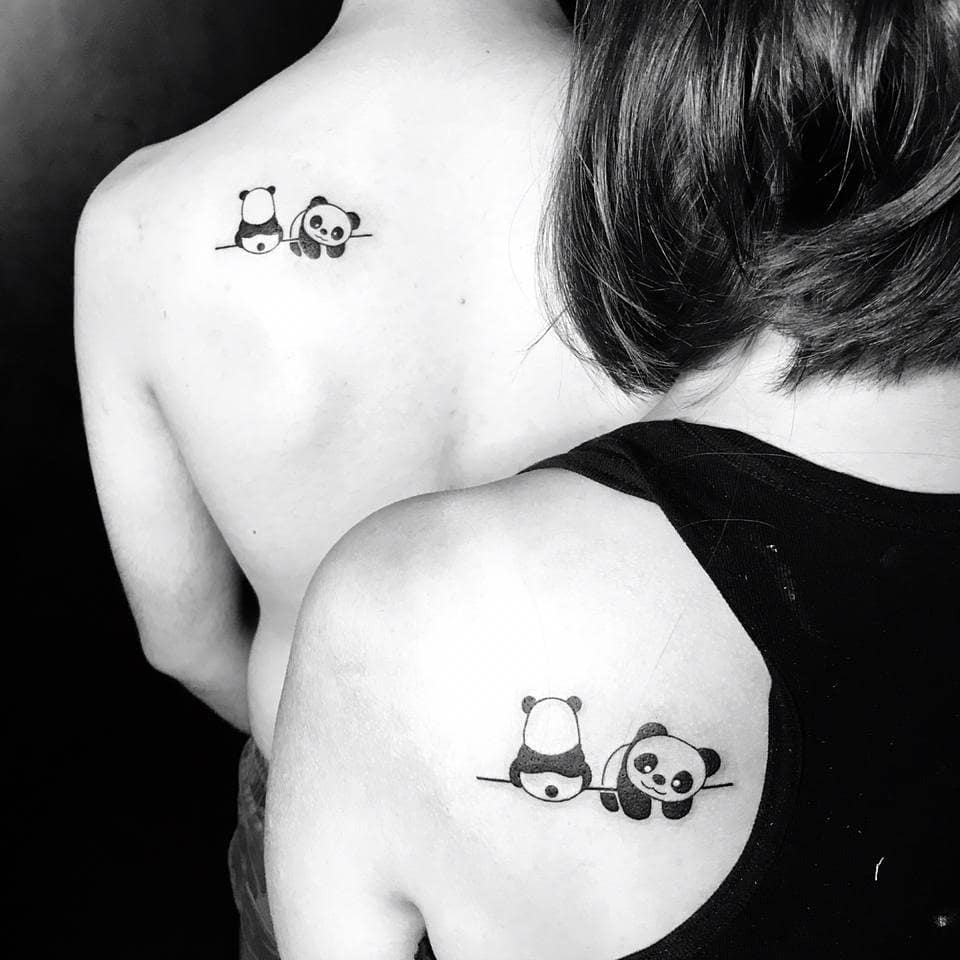 This delightful image showcases two siblings proudly displaying their matching panda tattoos on their shoulders. The playful design of the pandas adds a touch of whimsy, symbolizing their close bond and shared memories. Choosing a tattoo that reflects a special connection can make the experience even more meaningful for brothers and sisters.