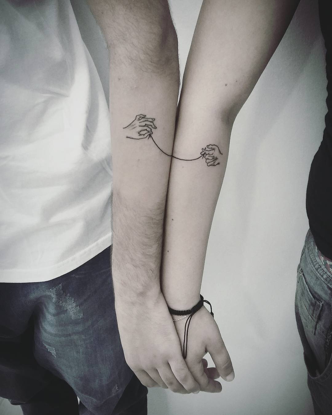 This tattoo beautifully captures the essence of connection with two hands linked together. It symbolizes trust and love, making it a perfect representation of the bond between siblings. For those considering a tattoo to celebrate their relationship, choosing a design that reflects a shared memory can make it even more meaningful.