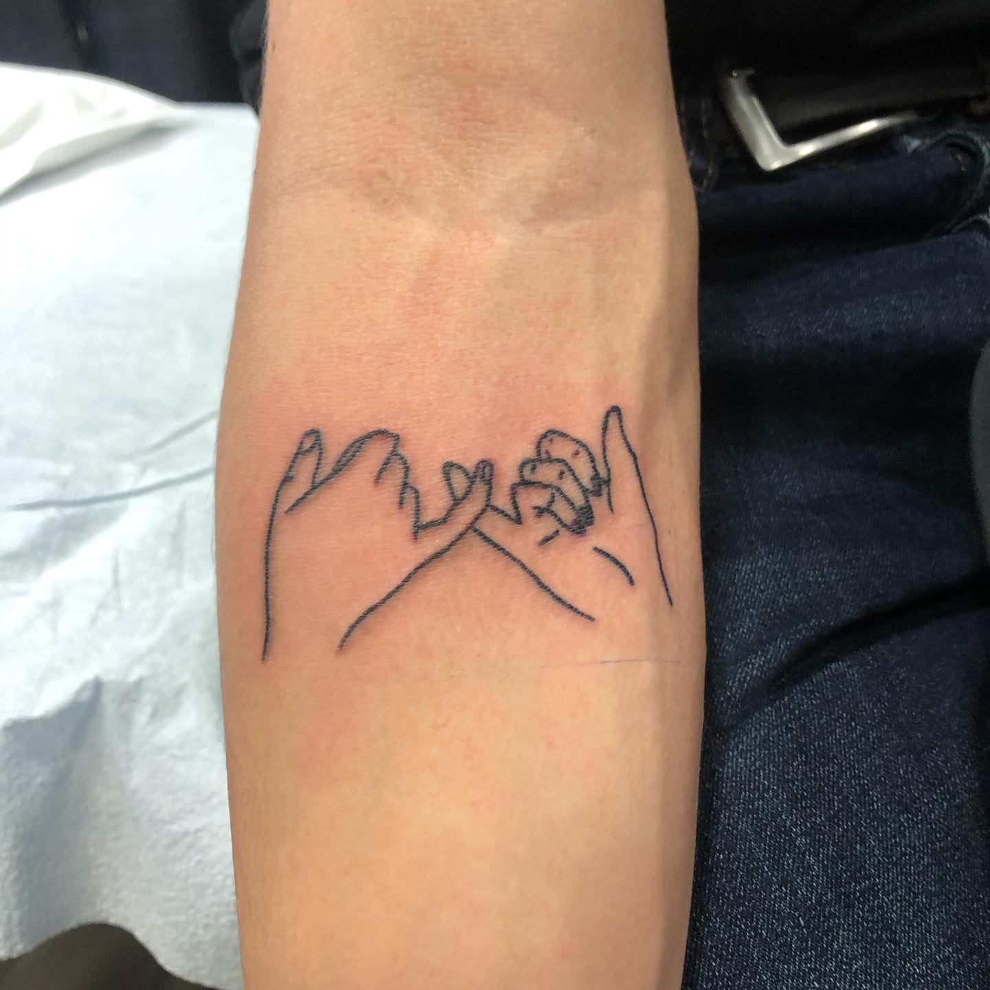 This image beautifully showcases two hands coming together, symbolizing the bond between a brother and sister. The minimalist design captures a moment of connection that speaks volumes about their relationship. Choosing a tattoo that reflects such a deep bond can serve as a constant reminder of family love and support.