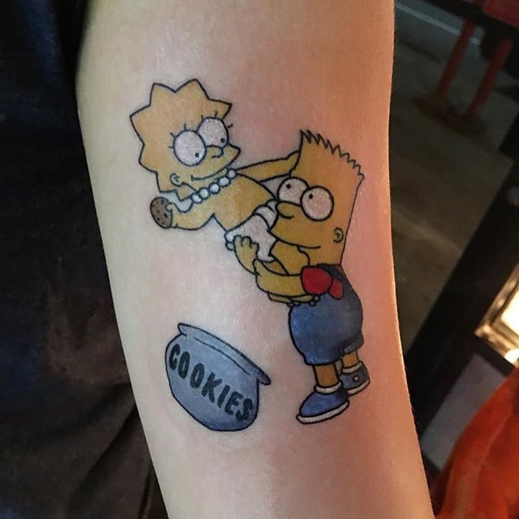 This tattoo captures a playful moment between Bart and Lisa Simpson, showcasing their classic sibling dynamic. It highlights not only their bond but also a shared love for fun and mischief, making it a charming tribute to sibling relationships. For those considering similar designs, choosing characters that resonate with your childhood can add an extra layer of meaning.