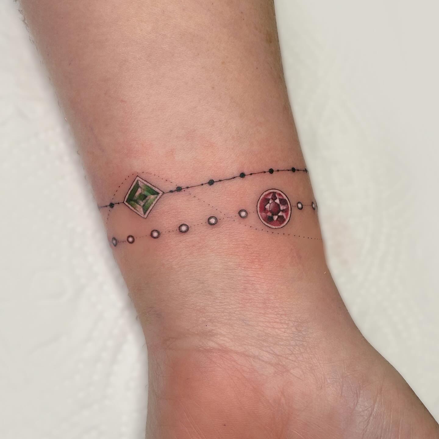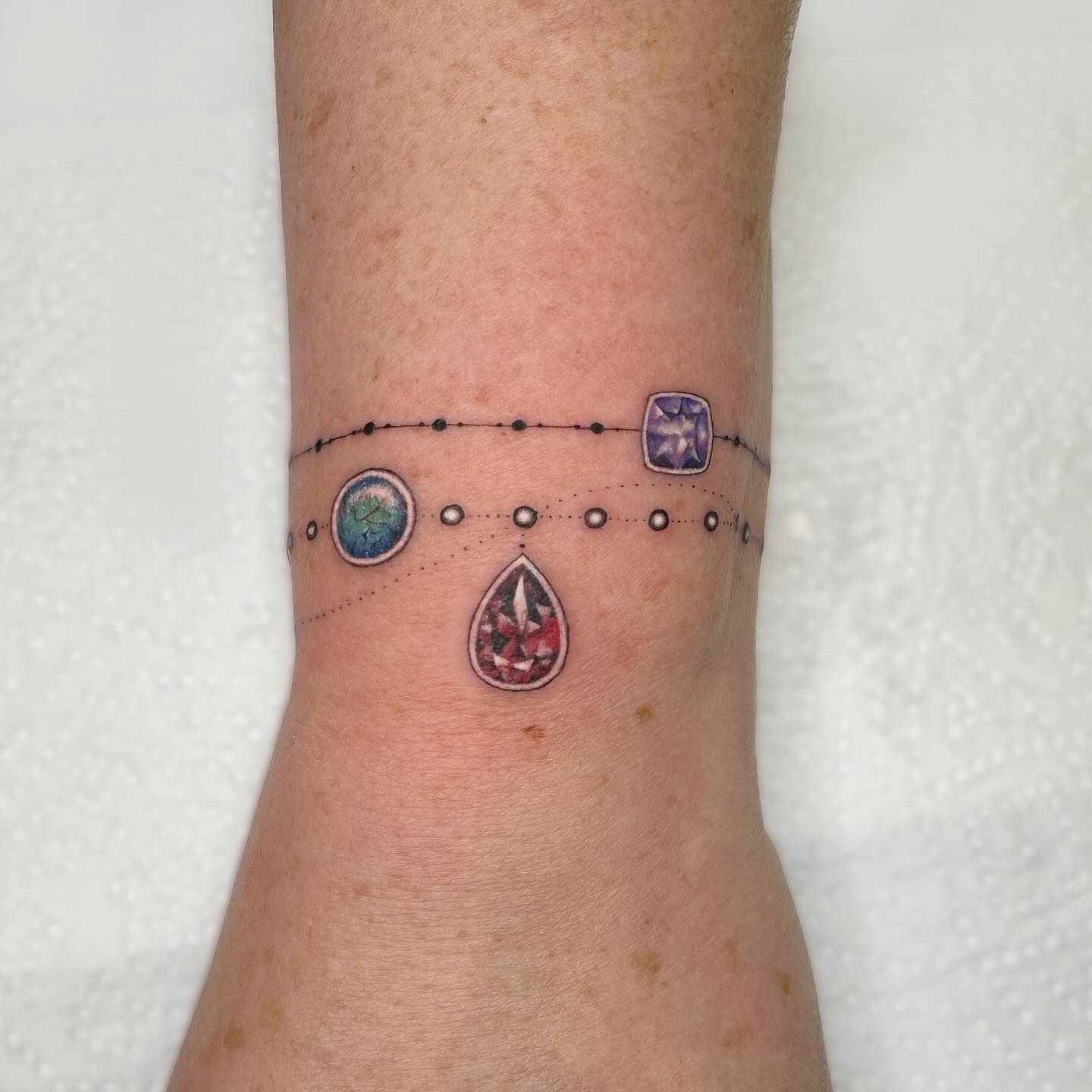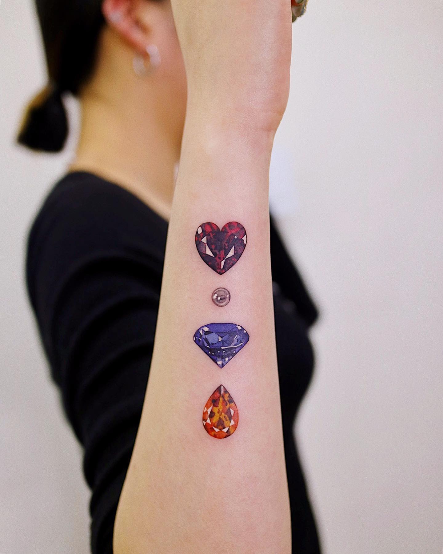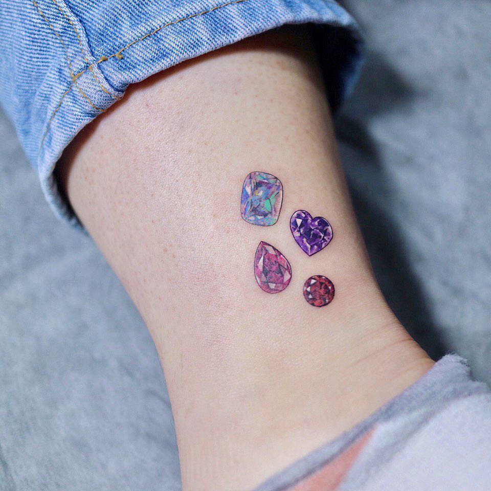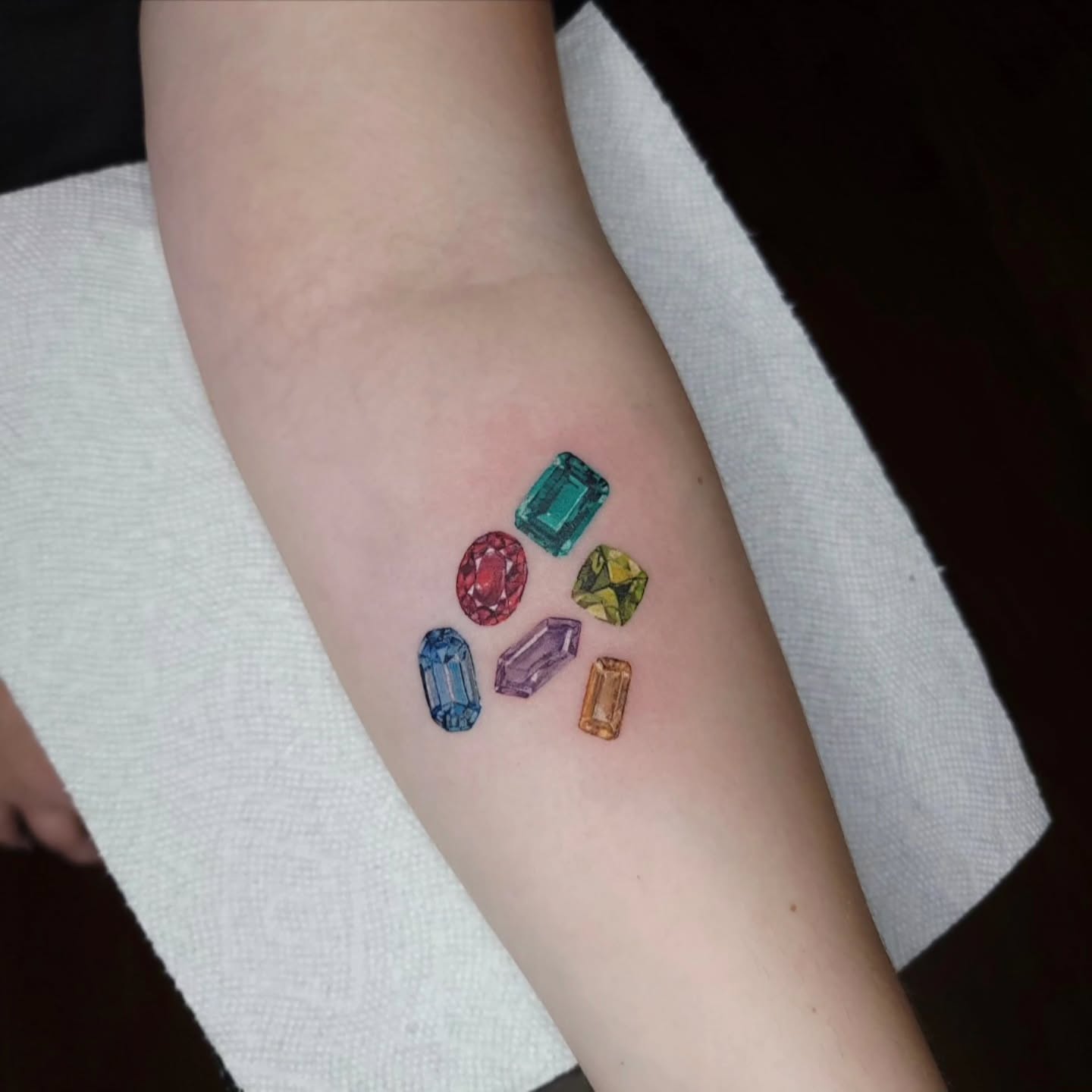 This tattoo design is perfect for those who want a subtle yet meaningful way to represent their birthstones or favorite colors.