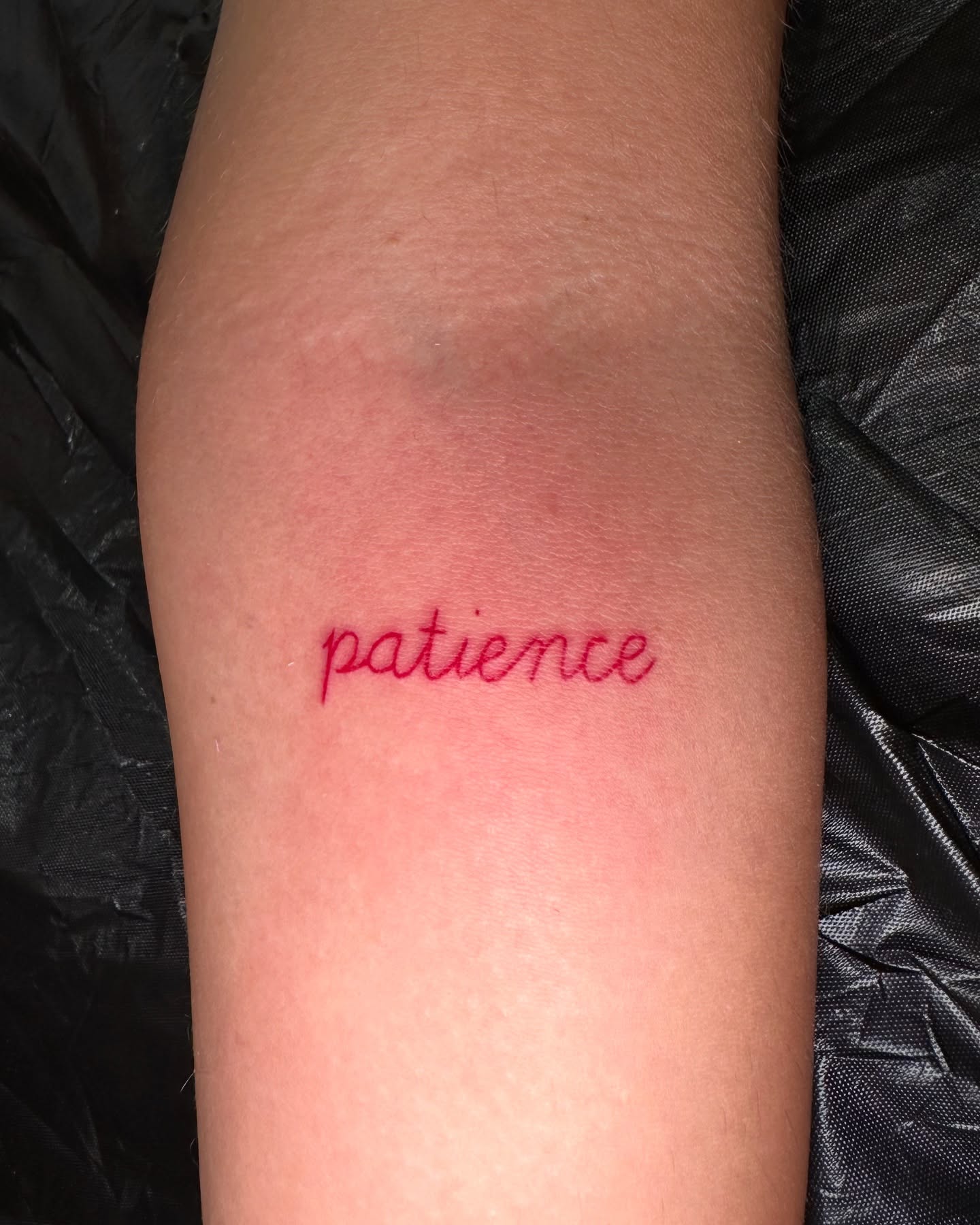 This design employs a clean and minimalistic style, emphasizing the clarity of the lettering against the skin.