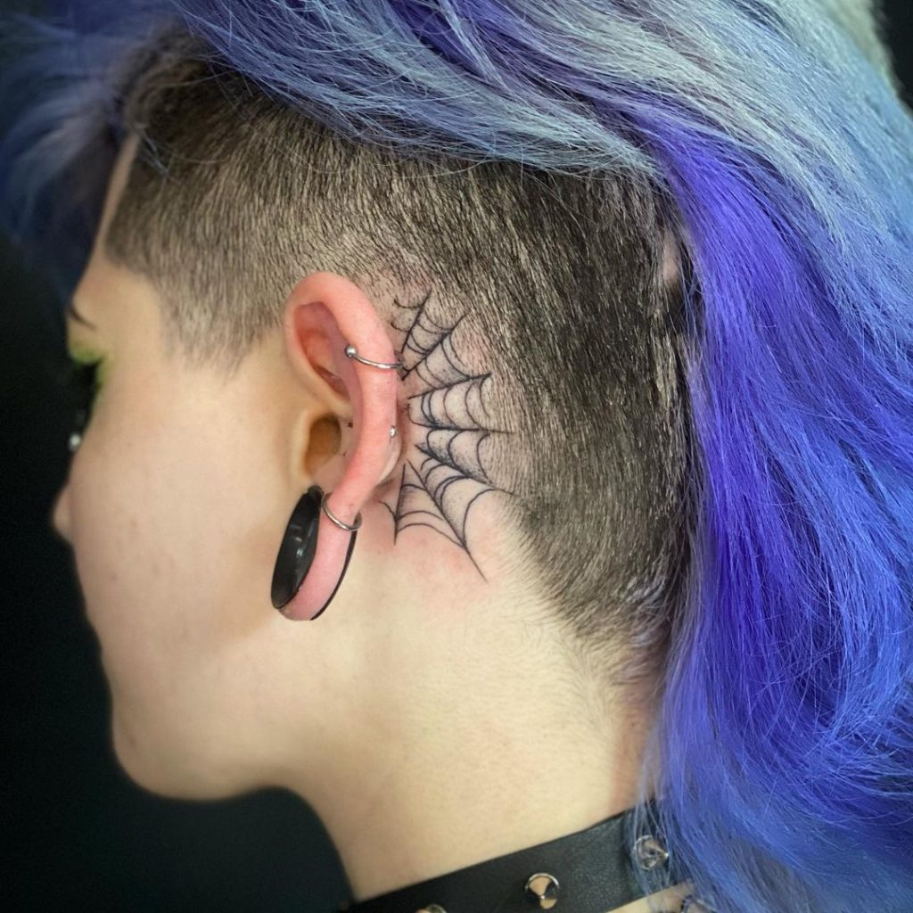 34. Intricate Spiderweb Tattoo Behind the Ear