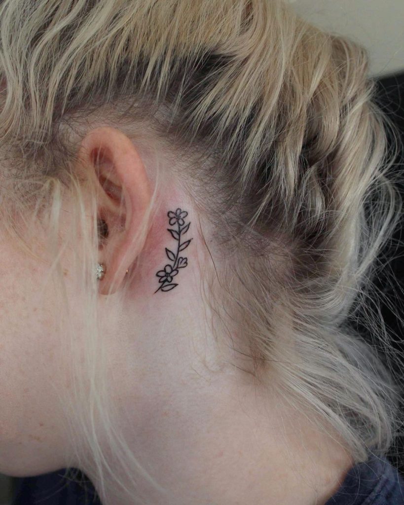 5. Delicate Floral Vine Tattoo Behind the Ear