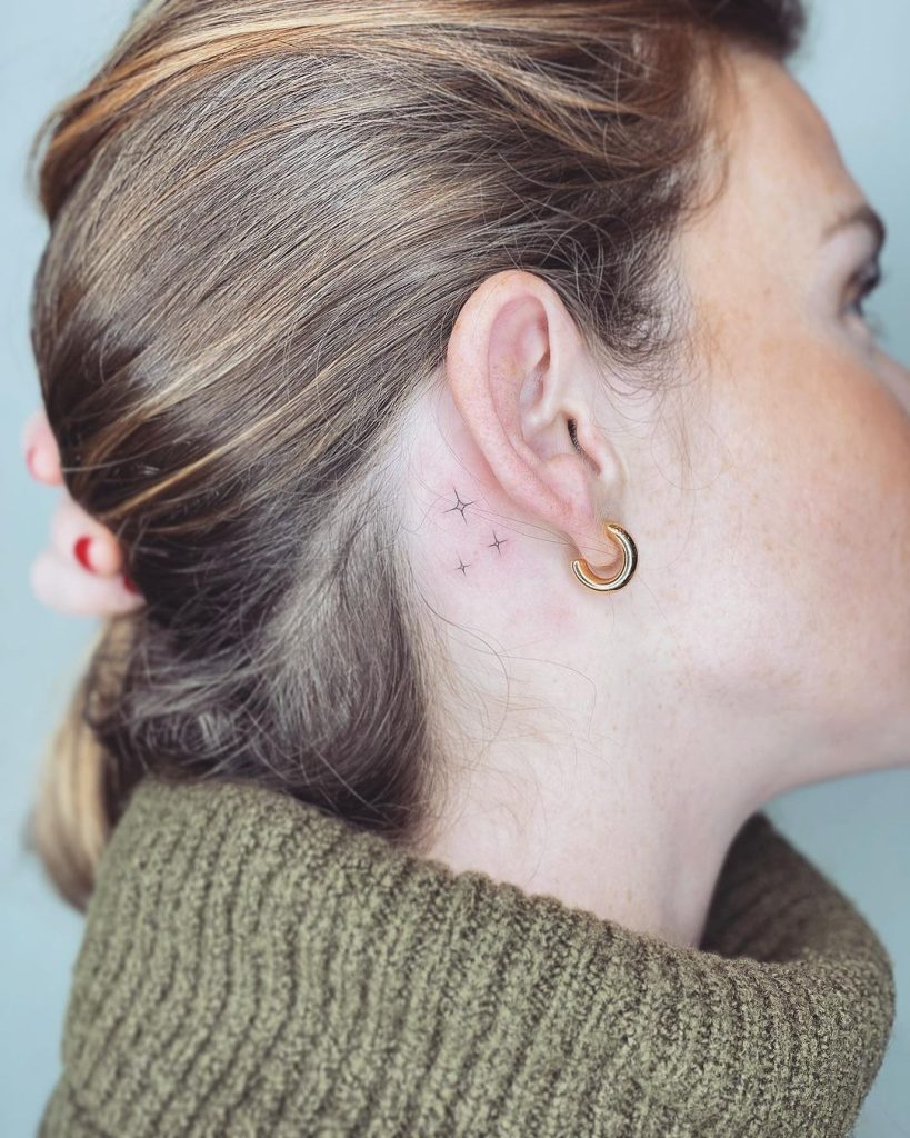 18. Subtle Sparkling Stars Tattoo Behind the Ear