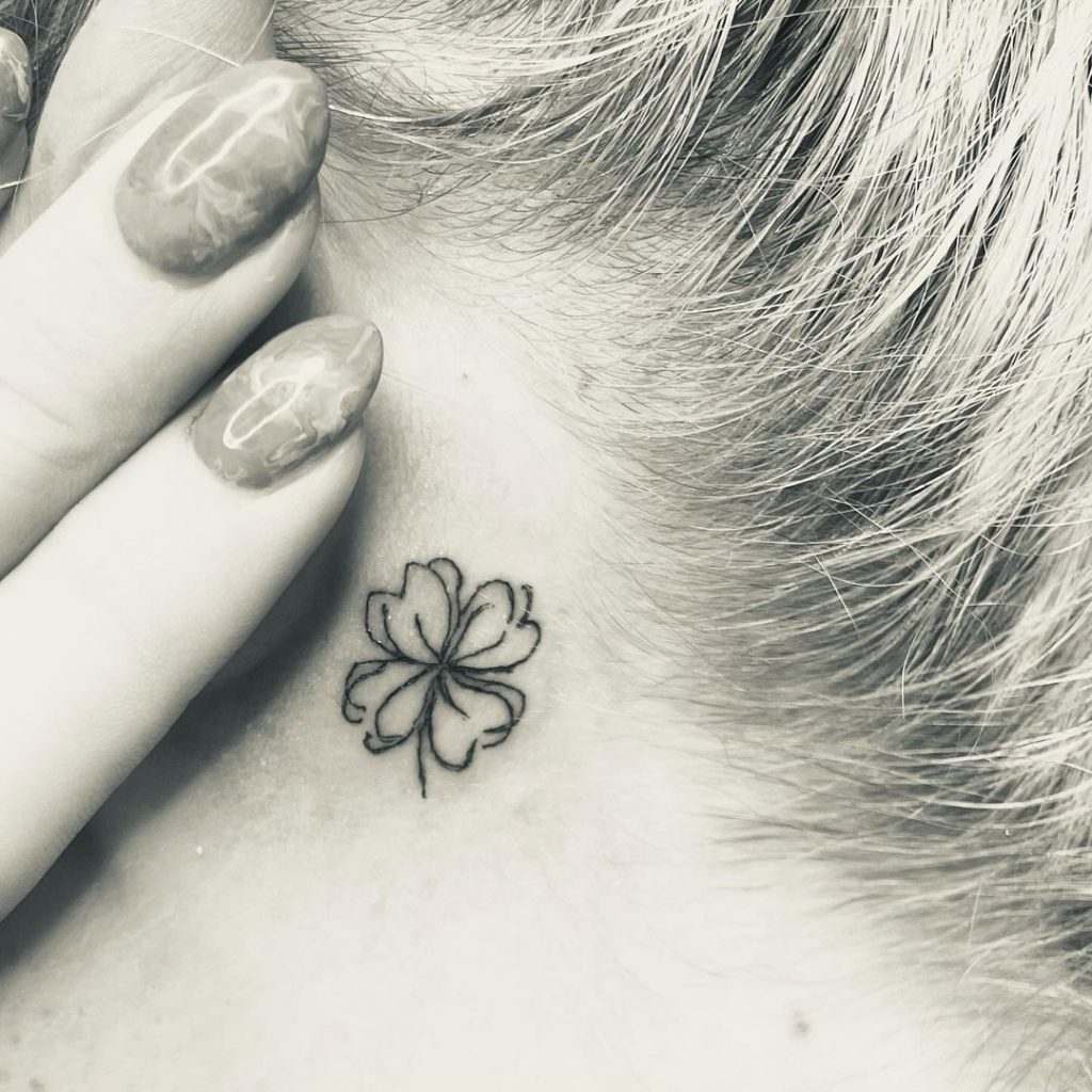 2. Lucky Four-Leaf Clover Tattoo Behind the Ear