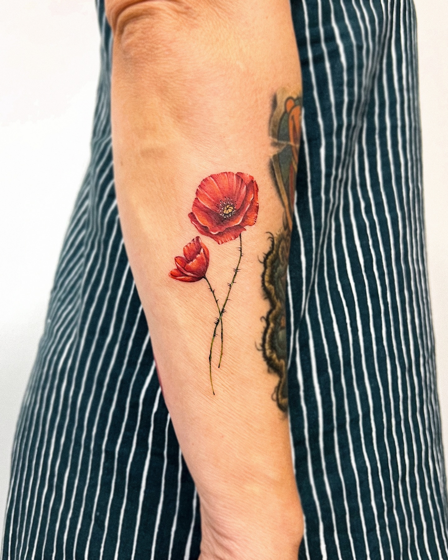 35. Poppy Tattoo with Green Stem Detail