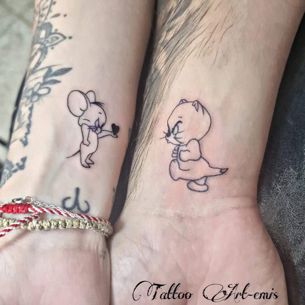 12. Adorable Mouse and Cat Couple Tattoos