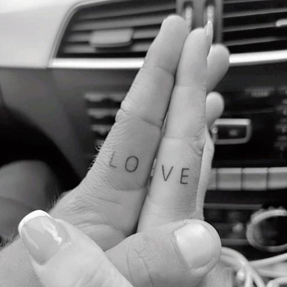 21. Split ‘LOVE’ Tattoos on Fingers