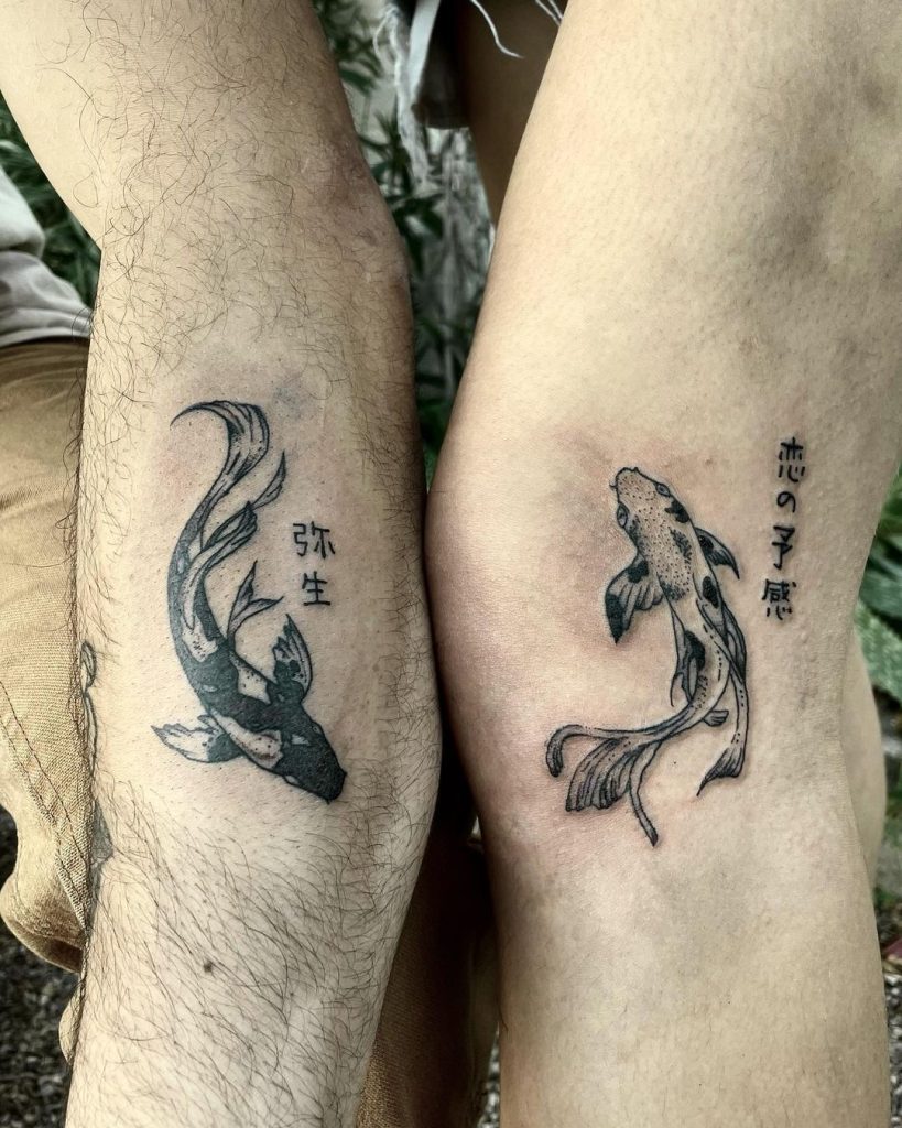40. Matching Koi Fish Tattoos with Japanese Script