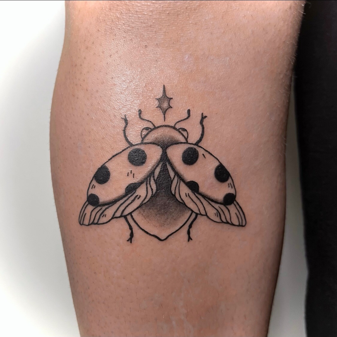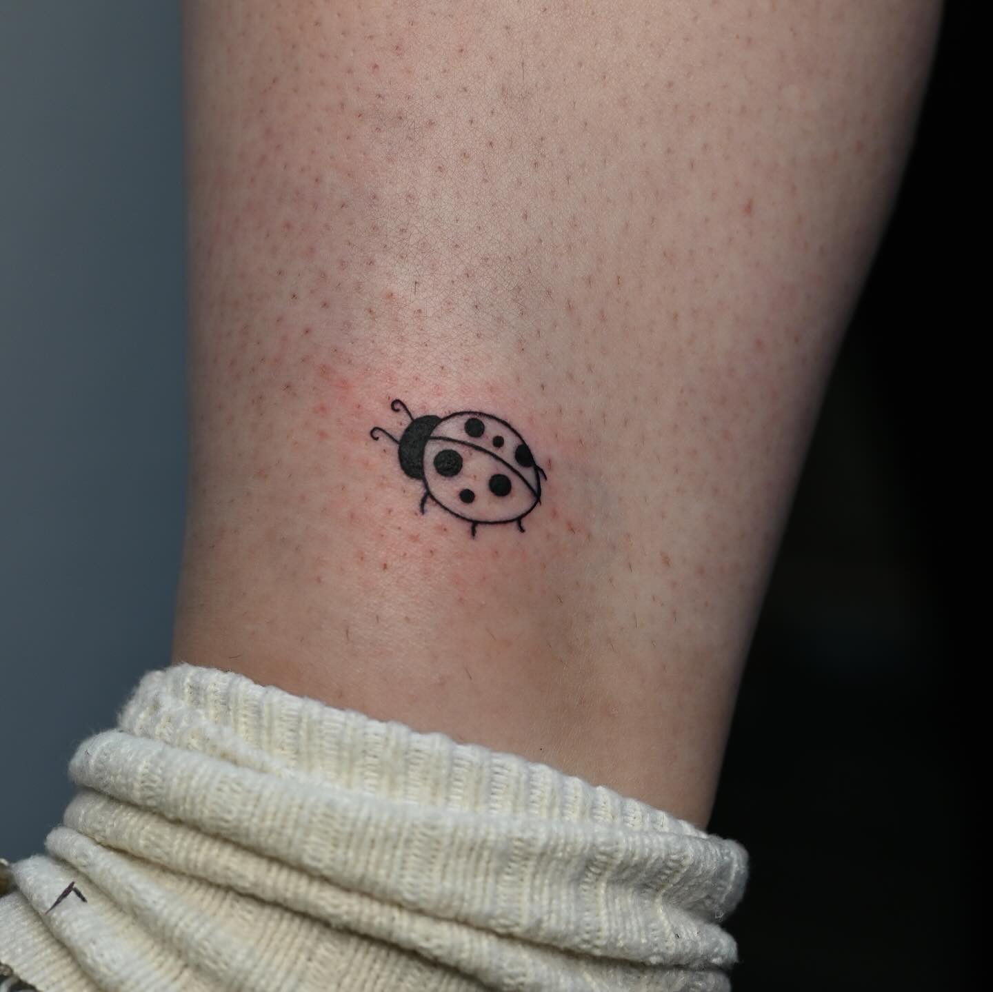 This minimalist approach highlights the charming shape and details of the insect, allowing for a clean and striking appearance on the skin.