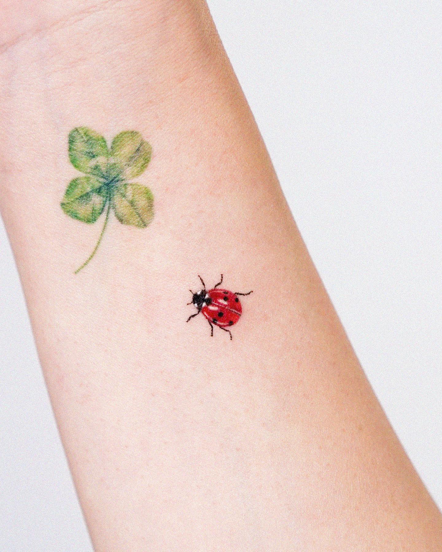 Such a tattoo would be ideal for someone looking to express love, luck, or a connection to nature through a whimsical and meaningful symbol.