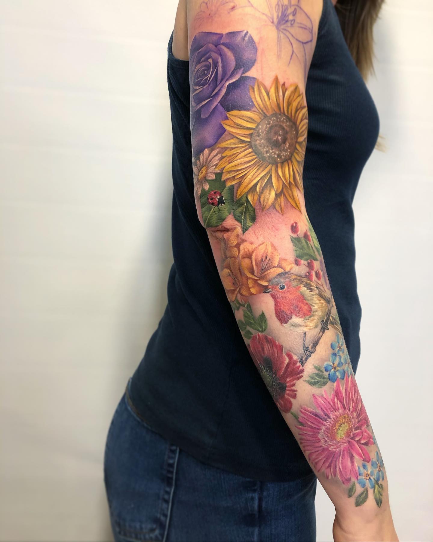 This type of tattoo is ideal for individuals looking to express their personality and love for nature, making it a great choice for those who appreciate colorful body art.