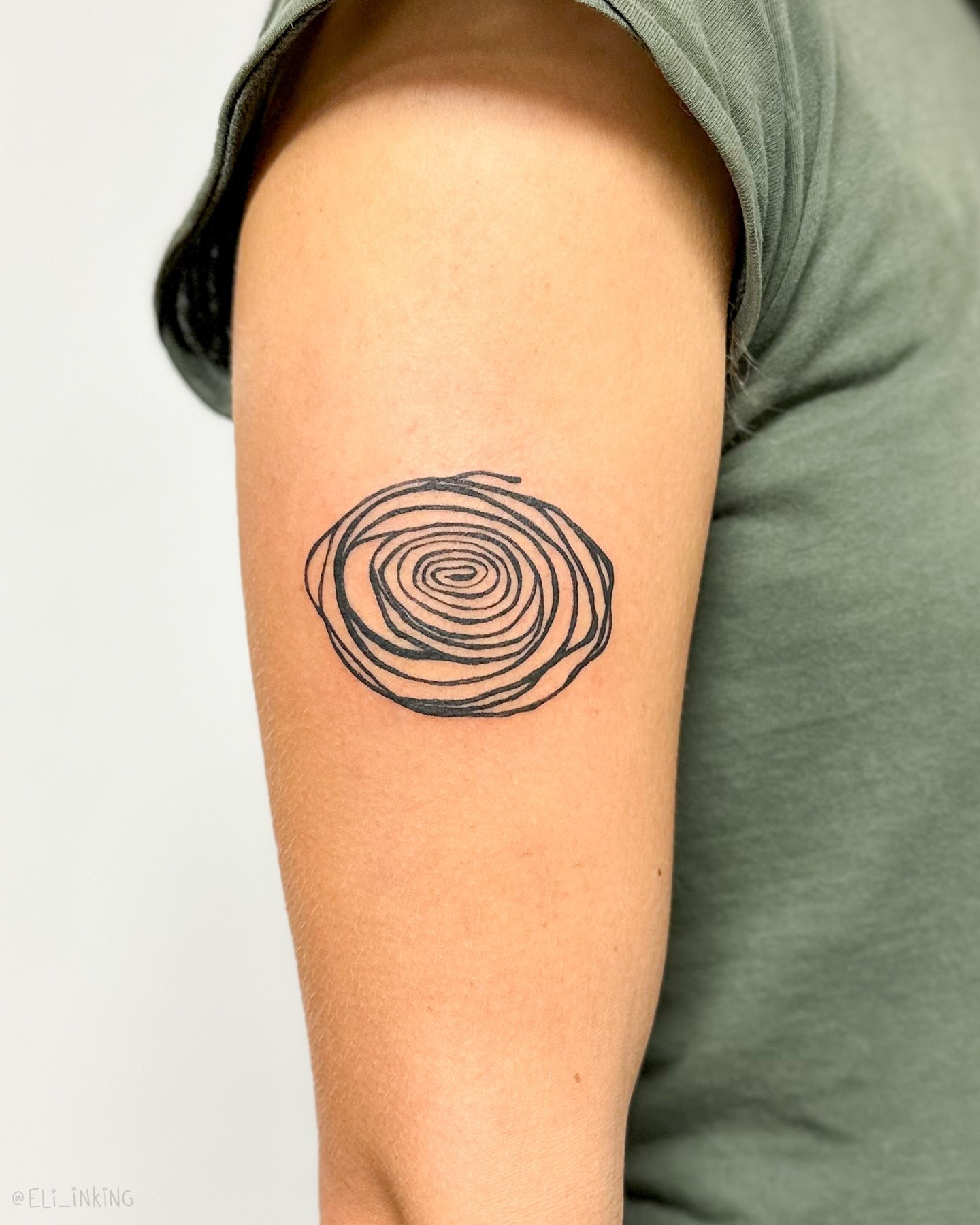 This captivating tattoo features a simple yet striking spiral that draws the eye in. The flowing lines create a sense of movement and can symbolize a journey or personal growth. Choosing a design like this can be a great way to express individuality while keeping it elegant and meaningful.