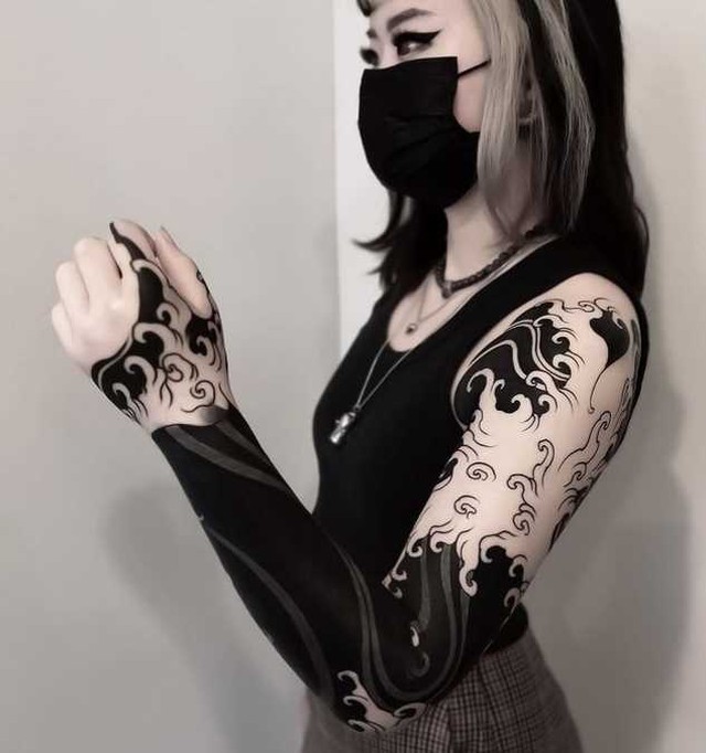 This striking tattoo design features intricate wave patterns that flow seamlessly across the arms, creating a sense of movement and energy. The bold black ink contrasts beautifully with the skin, making the artwork stand out even more. For those considering unique tattoos ideas, exploring designs inspired by nature can lead to stunning and personal expressions of art.
