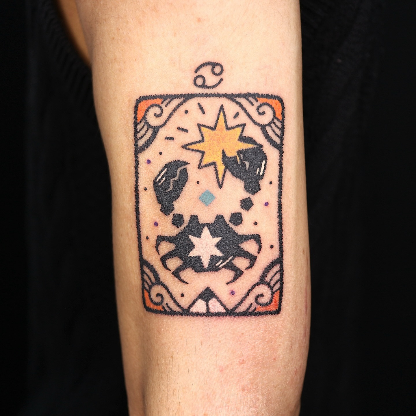This tattoo features an eye-catching card design adorned with stars and mysterious hands, creating a sense of wonder. The blend of black ink with vibrant colors makes it stand out, capturing the imagination of anyone who sees it. For those seeking unique tattoos ideas, considering designs that tell a story or reflect personal interests can make the artwork even more meaningful.