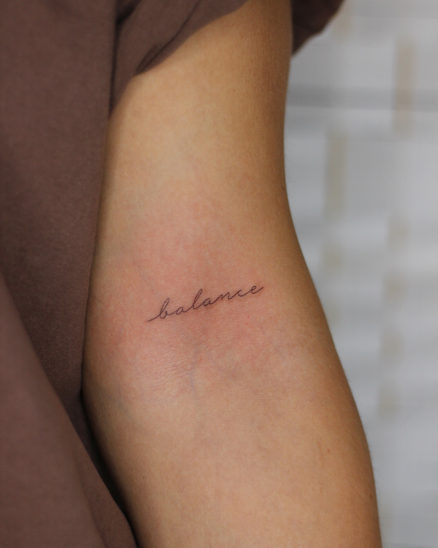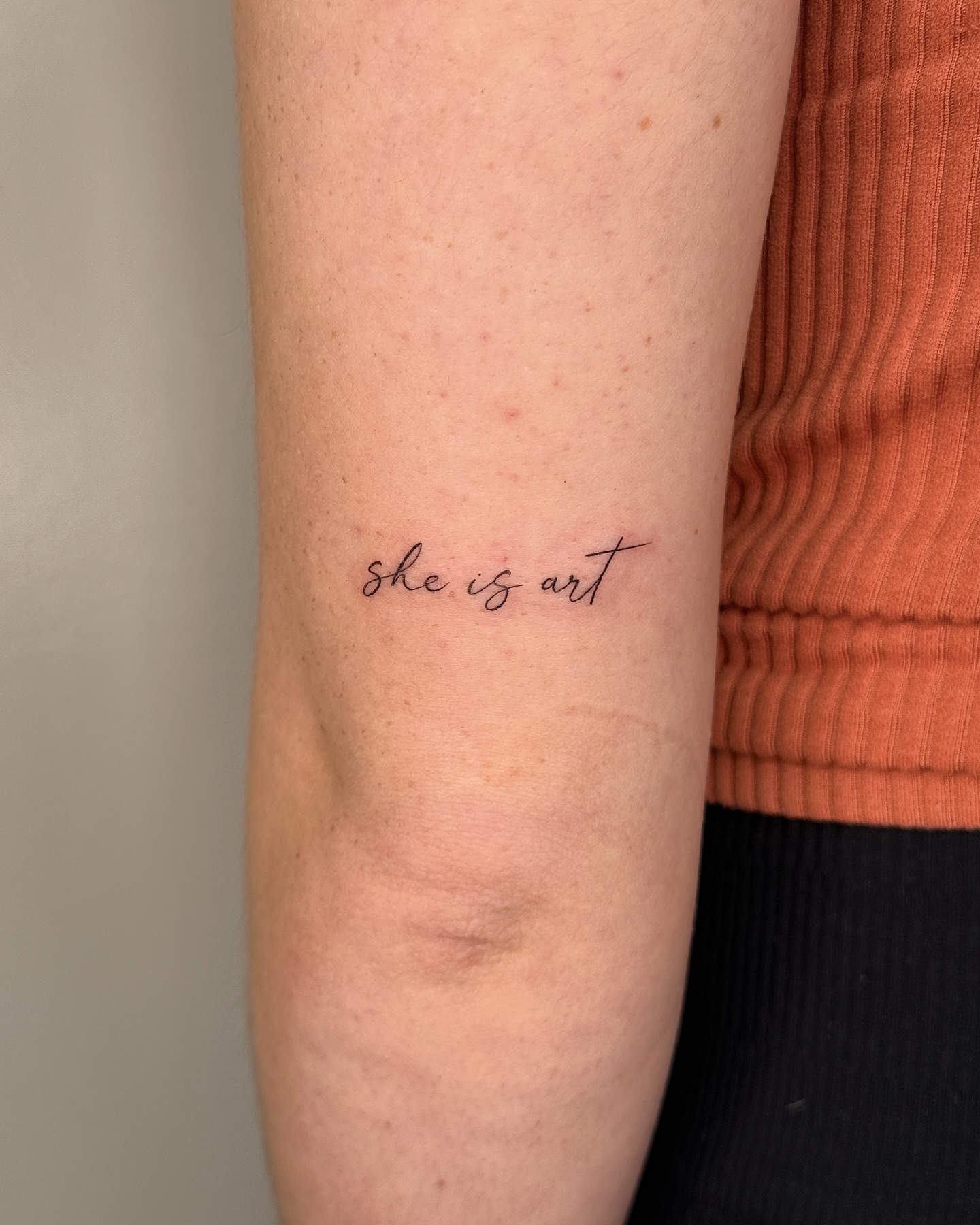 Such a tattoo is ideal for individuals seeking a discreet way to express meaningful words or phrases in their everyday lives.