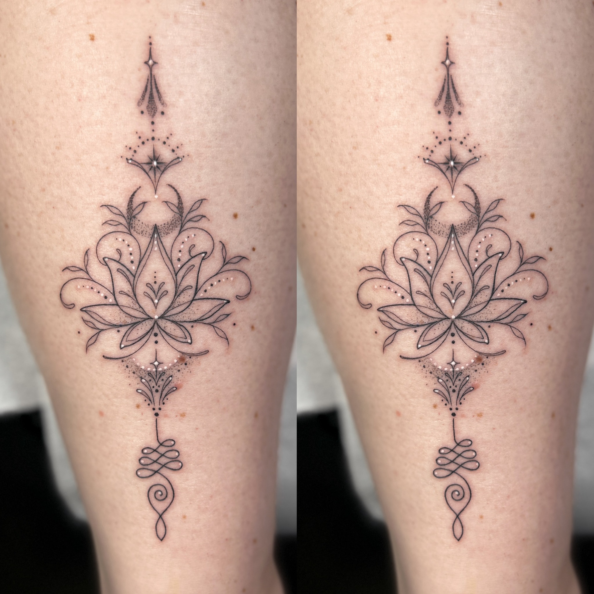 The delicate line work and soft ink color allow the design to blend seamlessly with the skin, creating a subtle yet impactful statement.