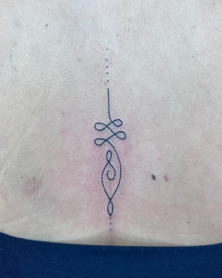 Its clean lines and minimalist design blend seamlessly with the skin, showcasing the beauty of simplicity in body art.