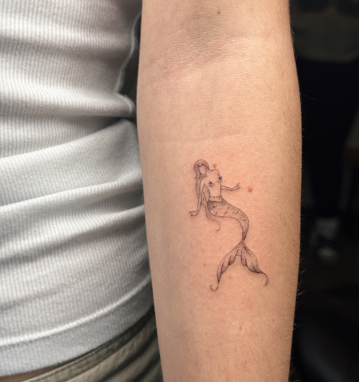 This minimalist approach emphasizes clarity and precision, using fine lines that create a subtle yet impactful statement on the skin.