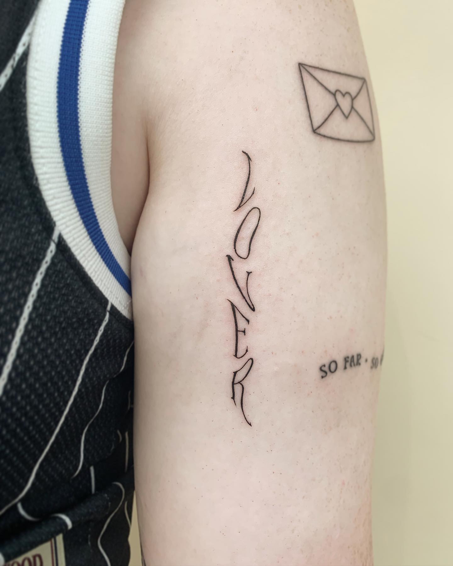 This tattoo beautifully captures the essence of love with its delicate script spelling out “LOVER.” The accompanying envelope design adds a charming touch, hinting at the sweet messages exchanged between loved ones. For those considering fine tattoos, opting for a meaningful word or symbol can create a personal connection that lasts a lifetime.