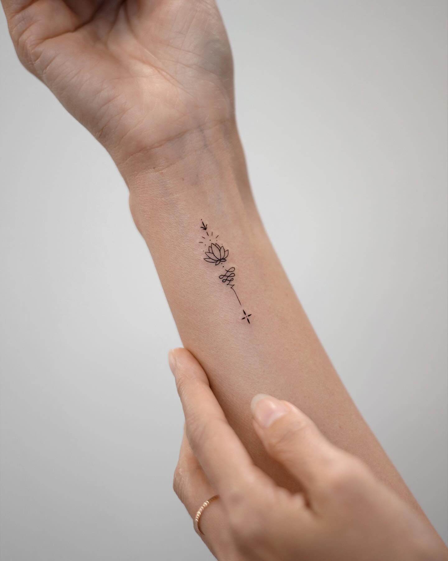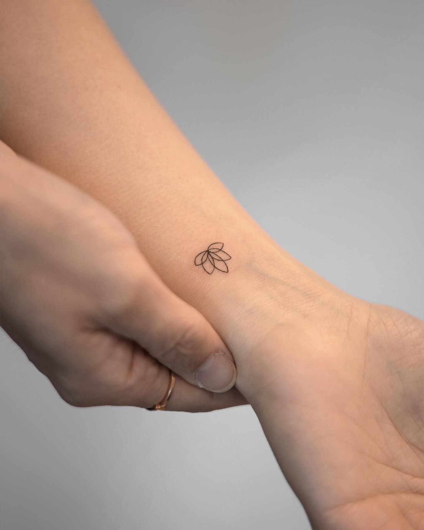 This delicate tattoo of a flower on the wrist showcases the beauty of simplicity. Its clean lines and subtle design make it an elegant choice for women who appreciate fine tattoos. Choosing a small yet meaningful tattoo can be a lovely way to express individuality without overwhelming the senses.