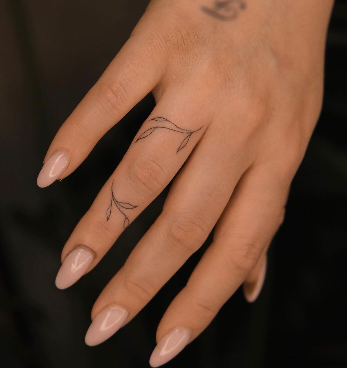 This image showcases a delicate floral tattoo that gracefully wraps around the finger, creating an elegant look. The fine line work adds a touch of sophistication, making it a perfect choice for those who appreciate subtle beauty. For a unique twist, consider choosing a design that holds personal meaning, transforming a simple tattoo into a cherished symbol.