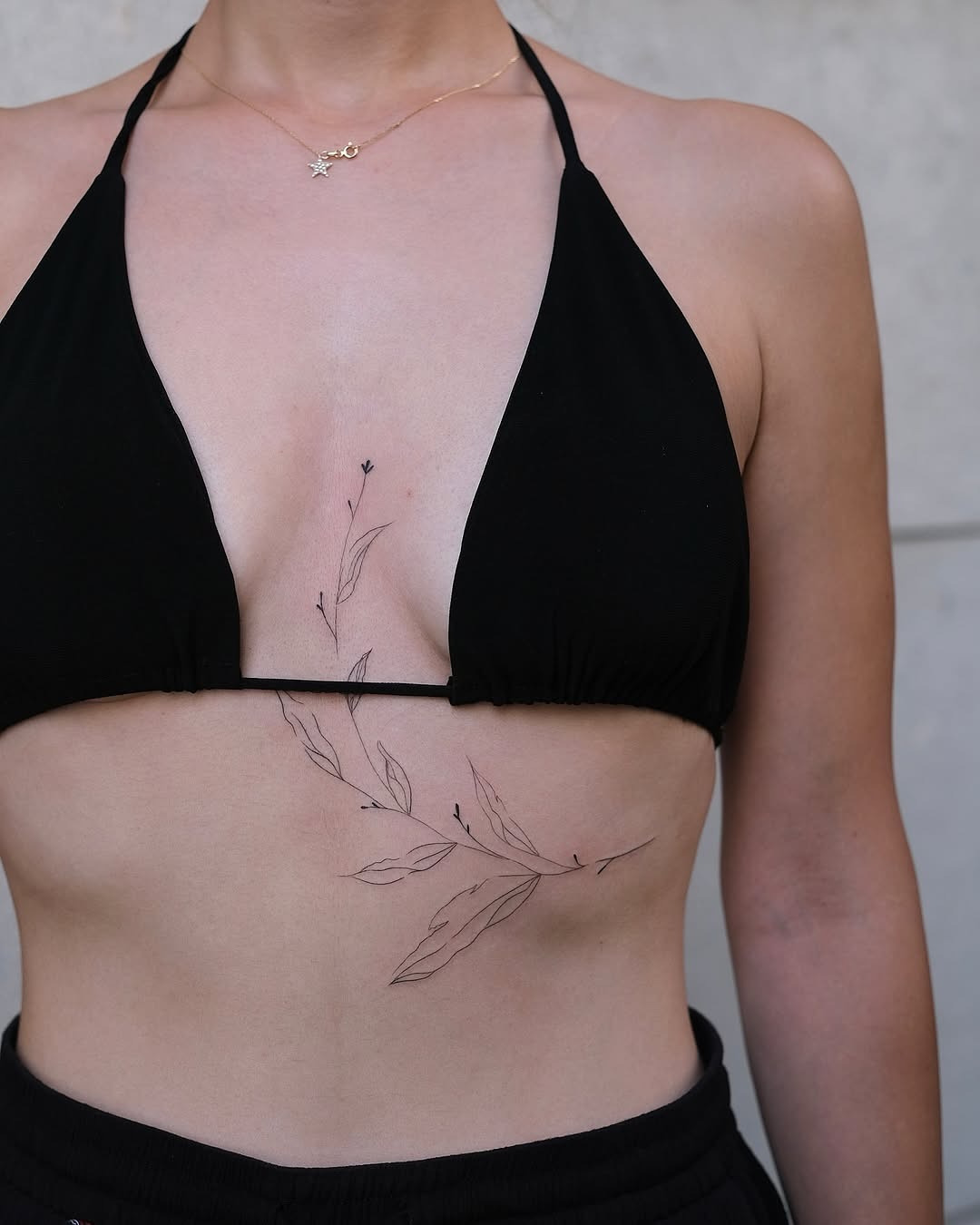 This tattoo beautifully captures the delicate essence of nature with its fine lines and elegant design. The subtle floral motif wraps around the body, making it a stunning piece that enhances the wearer’s style. For those looking to express their love for nature, a fine tattoo like this can be a perfect and personal choice.