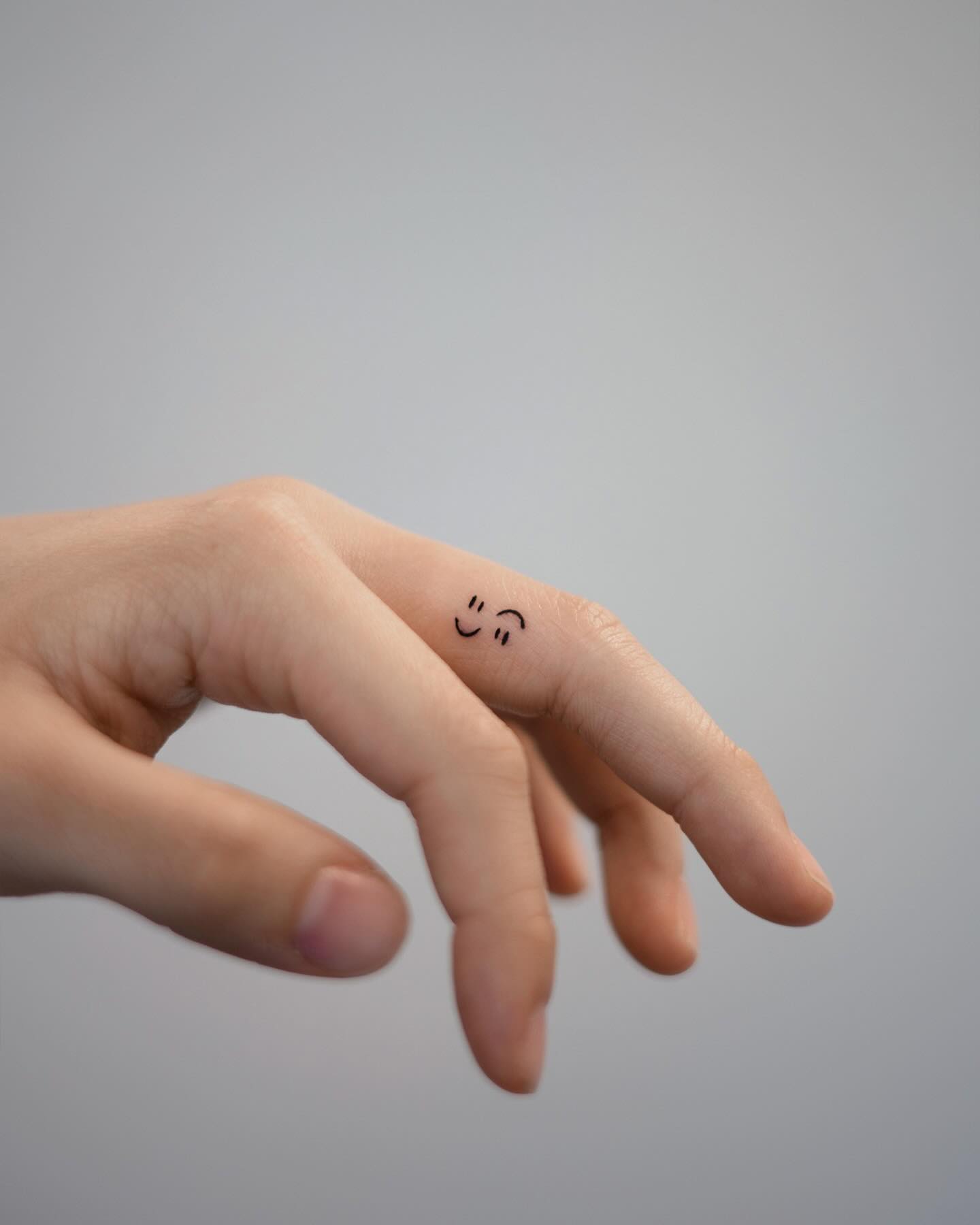 This charming tattoo of tiny smiling faces on a finger adds a playful touch to any look. It showcases how fine tattoos can be both subtle and expressive, making them perfect for women who want a small yet meaningful design. A great tip is to choose symbols that reflect your personality, ensuring your tattoo tells your unique story.