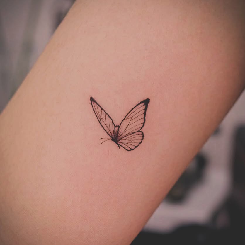 This delicate butterfly tattoo captures the beauty of transformation and freedom. With its fine lines and graceful wings, it symbolizes new beginnings and the delicate nature of life. For those considering a similar design, choosing a meaningful symbol can make the tattoo even more special.