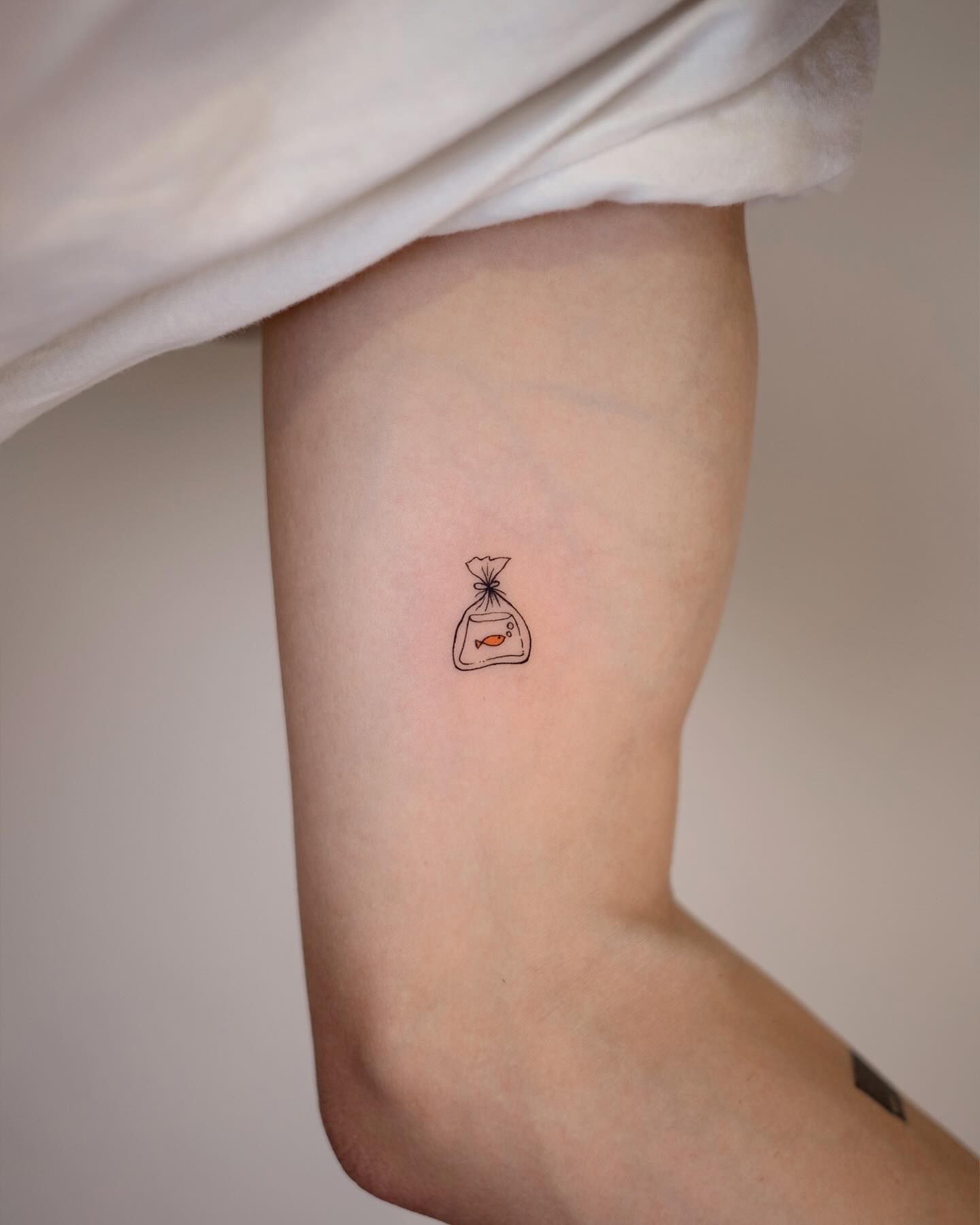 This charming tattoo of a fish in a bag adds a playful touch to any look. It s a unique choice that reflects a love for pets or aquatic life, making it a fun conversation starter. For those considering fine tattoos, choosing something that holds personal meaning can make your ink even more special.