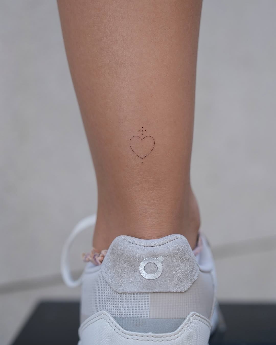 This lovely tattoo features a delicate heart surrounded by tiny stars, creating a sweet and playful vibe. The simplicity of the design makes it an excellent choice for anyone looking to express their affection in a subtle way. Pairing such a fine tattoo with casual footwear adds an effortless touch to any outfit, reminding wearers to embrace their unique style.